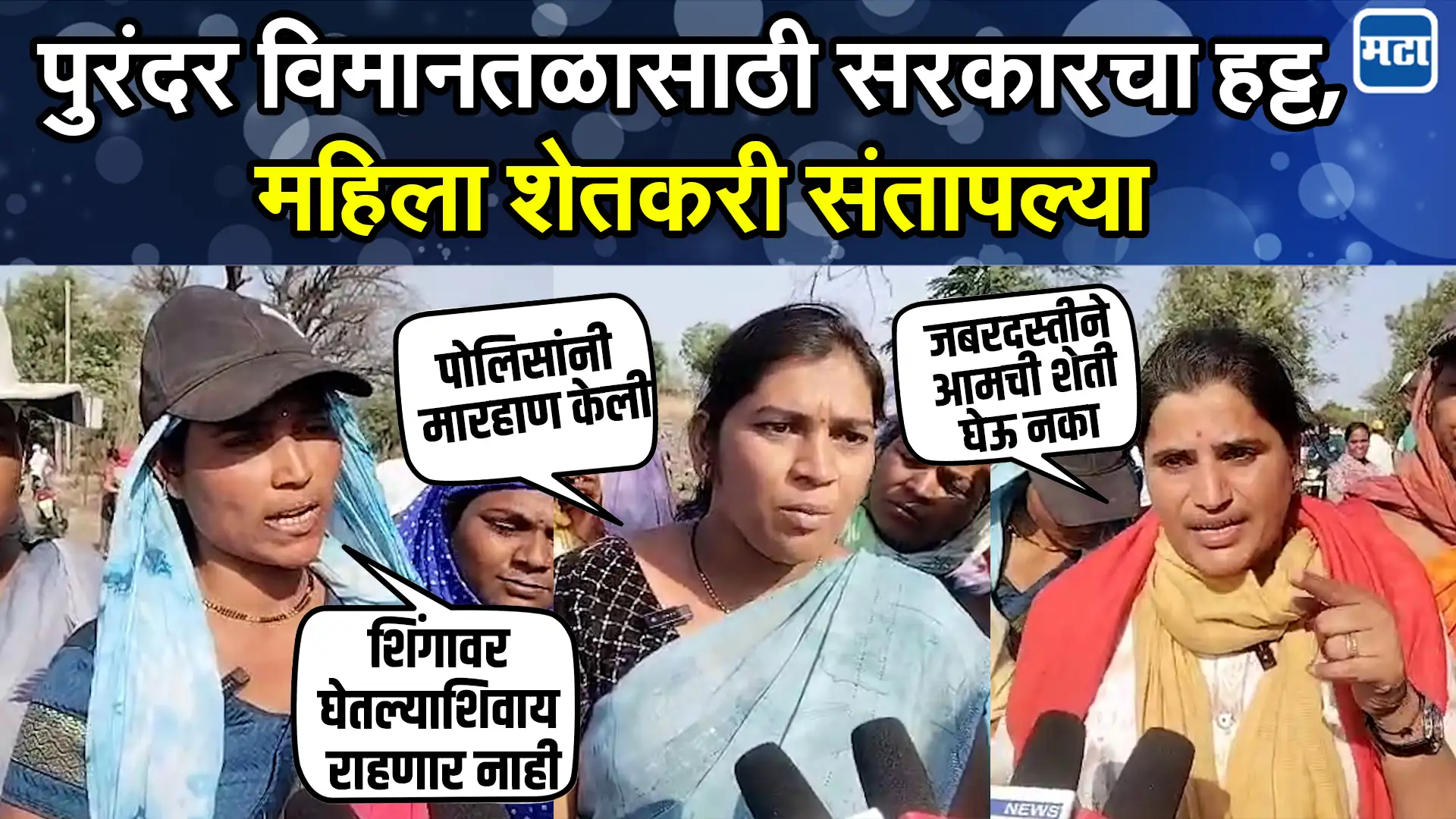 पुरंदर तालुक्यात होत असलेल्या आंतरराष्ट्रीय विमानतळाचा विरोध वाढत चाललाय. शासनाकडून विमानतळासाठी लागणाऱ्या जमिनीचा ड्रोन सर्वे करण्यात येतोय… मात्र बाधित सातही गावातील शेतकऱ्यांनी या ड्रोन सर्वेला विरोध केलाय. शुक्रवारी ड्रोन सर्वेला आलेल्या अधिकाऱ्यांना गावातील लोकांनी सर्वे बंद करण्यास भाग पाडलं होतं. तर शनिवारी ३ मेला प्रशासनाच्या वतीने मोठा पोलीस बंदोबस्त मागवण्यात आला तसेच ड्रोन्स सर्वे करण्यात येणार होता. मात्र तेव्हाही सात गावातील नागरिकांनी या सर्वेला विरोध केला.. पण यानंतर पोलीस आणि आंदोलकांमध्ये झटापट झाली.