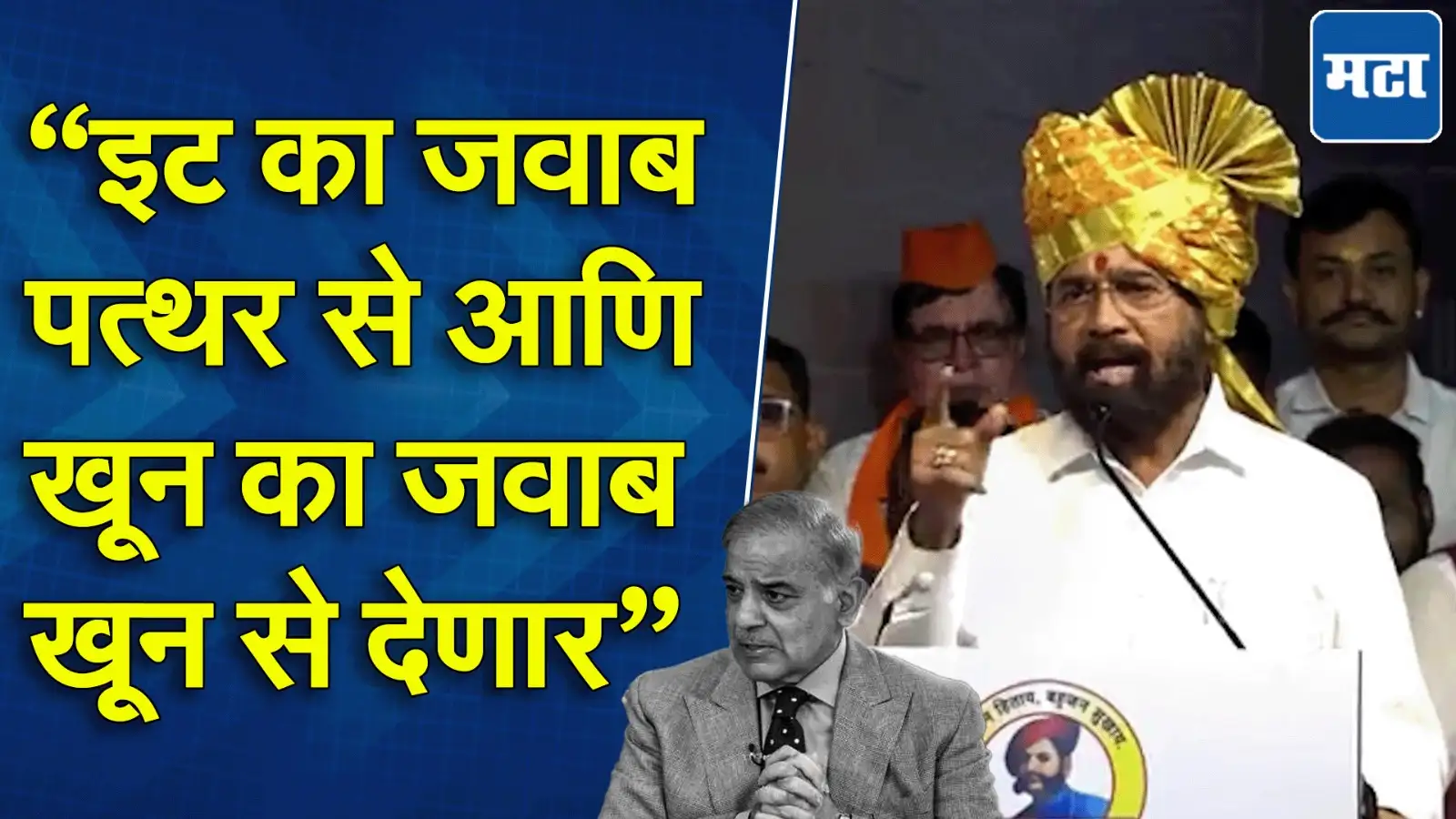 जयसिंगपूर येथे छत्रपती शिवाजी महाराज यांच्या अश्वारूढ पुतळ्याचे अनावरण व संग्रहालय लोकार्पण सोहळा पार पडला.या सोहळ्याला एकनाथ शिंदे यांनी हजेरी लावून भाषण केलं.एकनाथ शिंदे यांनी पहलगाम येथे दहशतवाद्यांनी केलेल्या हल्ल्याचा संताप व्यक्त करत कारवाई होणार असल्याच म्हटलं. पाकिस्तान दहशतवाद्यांच्या मागून जे कारवाई करतोय त्याला जशास तसे उत्तर भारताकडून दिलं जाईल असं शिंदे म्हणाले.पाकिस्तानला इट का जवाब पत्थर से आणि खून का जवाब खून से देणार असल्याचं एकनाथ शिंदे यांनी म्हटलं.