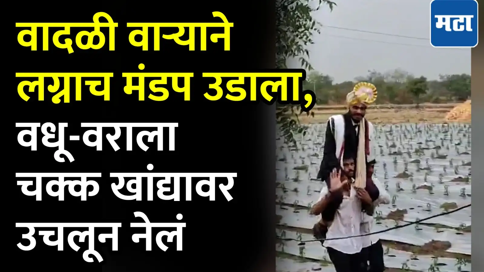 हा व्हिडिओ आहे छत्रपती संभाजीनगरमधला… जिल्ह्यात वादळी वाऱ्यासह झालेल्या पावसाचा फटका एका लग्न समारंभाला बसला. अचानक आलेल्या पावसामुळे सिल्लोड तालुक्यातील पेंडगाव या गावात लग्न समारंभासाठी लावलेला मंडप उडून गेला. यामुळे सर्व साहित्यांची अक्षरशः दाणा दान उडाली. एवढेच नाही तर वादळी वाऱ्यामुळे वधू-वर याला चक्क वऱ्हाडी मंडळींनाच उचलून नेण्याची वेळ आली. या घटनेचा व्हिडिओ सध्या समाज माध्यमांवर चांगलाच व्हायरल होत आहे.