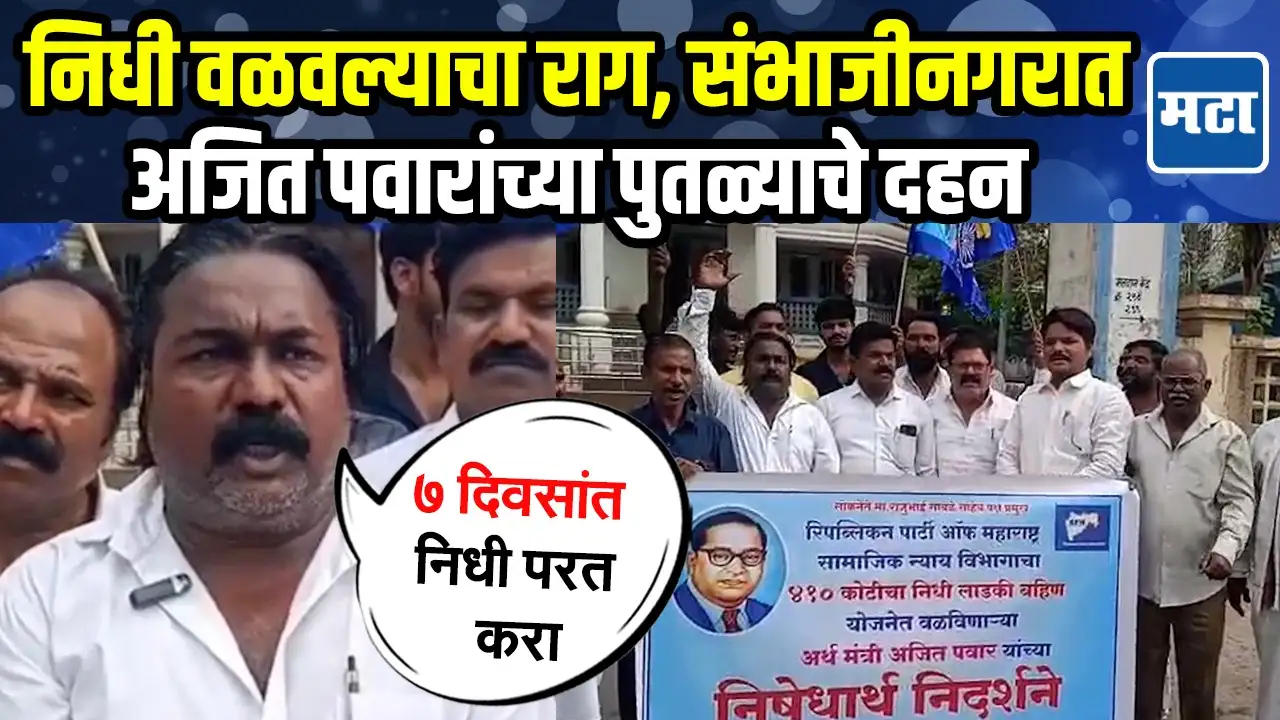 समाज कल्याण विभागाचा निधी वळवल्यामुळे अजित पवारांवर नाराजी व्यक्त केली जातेय.अशातच आता रिपब्लिकन पार्टी ऑफ महाराष्ट्र देखील चांगलीच आक्रमक झाली आहे.छ. संभाजीनगर शहरातील सामाजिक न्याय विभागासमोर निदर्शने करण्यात आली.७ दिवसात निधी परत करा असं म्हणत रिपब्लिकन पार्टी ऑफ महाराष्ट्रने इशारा दिला.