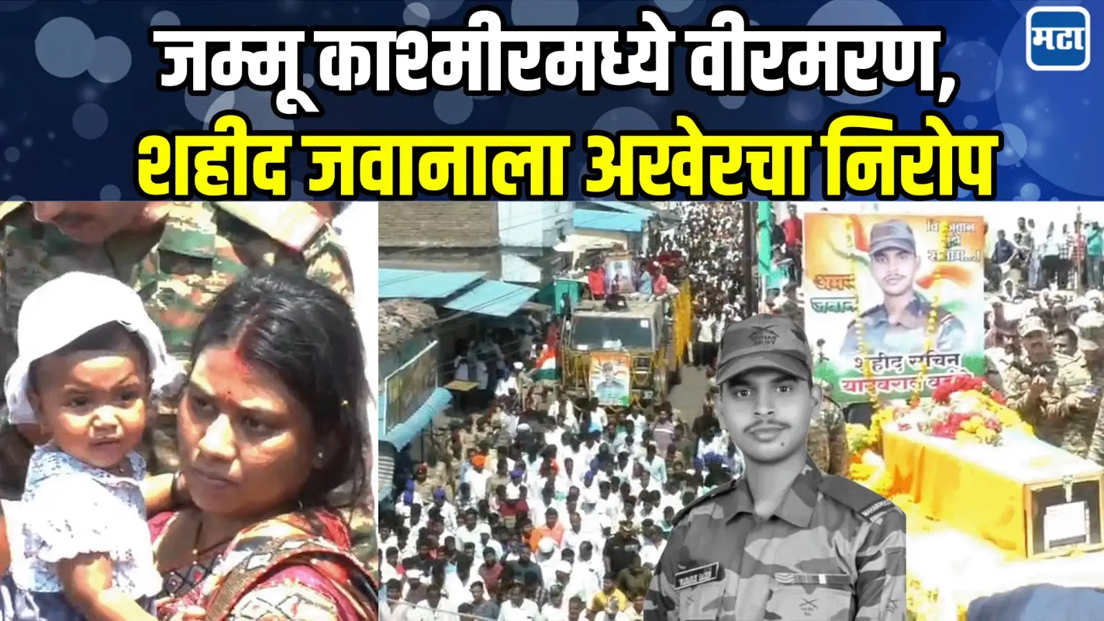 जम्मू काश्मीर येथील श्रीनगर येथील अपघातात नांदेडच्या सचिन वनंजे या जवानाला वीरमरण प्राप्त झालं.6 मे रोजी श्रीनगर येथे आठ फूट खोल दरीत वाहन कोसळल्याने कर्तव्यावर २९ वर्षीय सचिन वनंजे यांचा मृत्यू झाला.तांत्रिक बाबी पूर्ण झाल्यानंतर काल रात्री सचिन याचं पार्थिव देगलूर येथे आणण्यात आला. नांदेड जिल्ह्यातील देगलूर येथे शासकीय इतमामात आज त्यांच्यावर अंत्यसंस्कार करण्यात आले. यावेळी लोकप्रतिनिधींसह हजारो नागरिकांनी अंत्यविधीला हजेरी लावली होती. आपल्या आठ महिन्याच्या मुलीला कडेवर घेऊन पत्नीने आपल्या पतीला अखेरचा निरोप दिला. सचिन यांना अखेरचा निरोप देताना पत्नी, भाऊ आणि आई वडिलांना अश्रू अनावर झाले होते.
