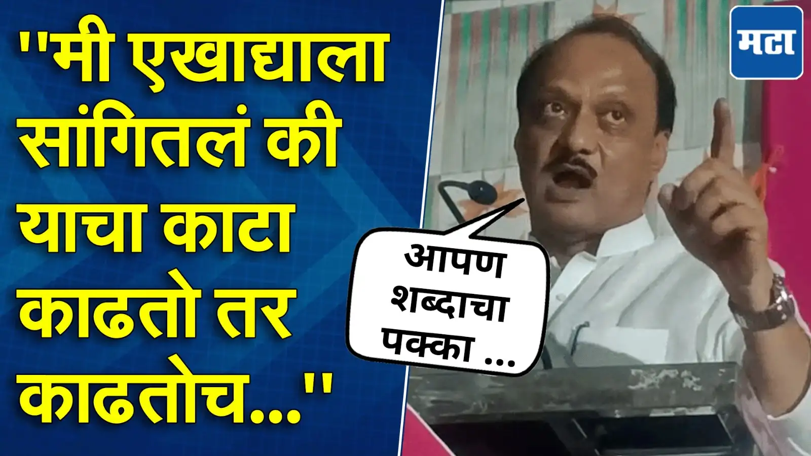 पुण्याच्या इंदापूरमधील अकोले येथे काल अजितदादांची सभा पार पडली.छत्रपती सहकारी साखर कारखान्याच्या प्रचारासाठी उपमुख्यमंत्री अजित पवार यांची सभा पार पडली. या सभेत अजित पवारांनी चांगलीच फटकेबाजी केली.आपण एखाद्याला सांगितलं की काटा काढतो तर काढतोच, असं अजितदादा म्हणाले.