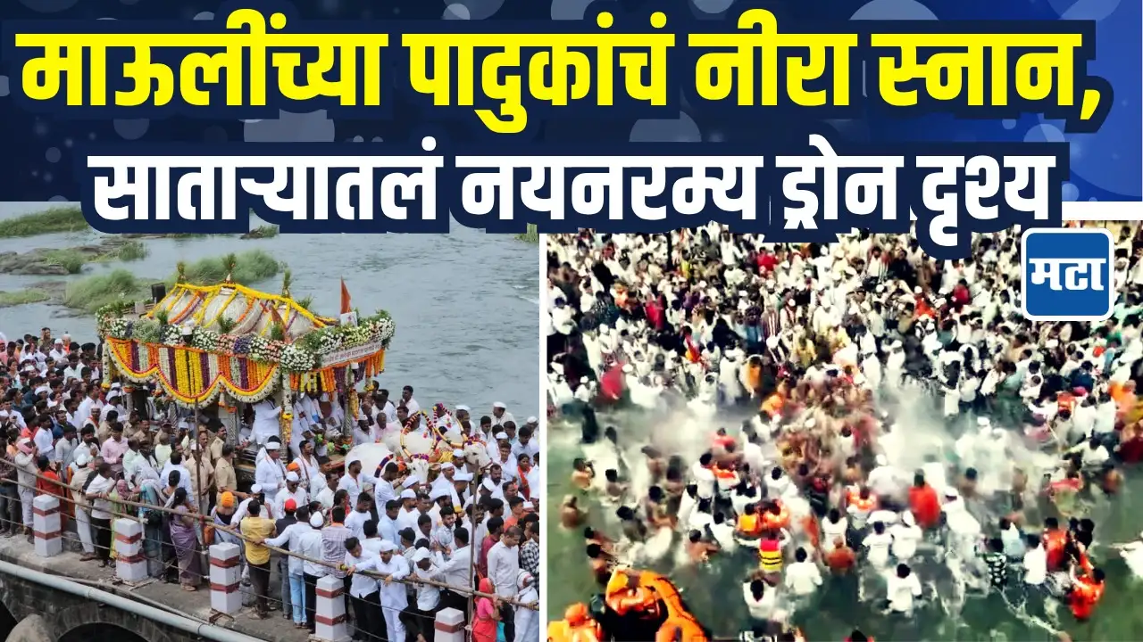 संत ज्ञानेश्वर महाराज पायी वारी पालखी सोहळ्याने आज मजल दरमजल करत सातारा जिल्ह्यात प्रवेश केला. पुणे आणि सातारा हद्दीवर असलेल्या नीरा नदीमध्ये दत्त घाटावर…संतश्रेष्ठ ज्ञानेश्वर महाराज यांना निरा स्नान हा अभूतपूर्व सोहळा वारकऱ्यांनी पाहिला.टाळ-मृदुंगाच्या गजरात आणि ‘ज्ञानोबा माऊली’च्या जयघोषात हा सोहळा पार पडला.सातारा जिल्ह्यातील पाडेगाव येथे पालखी सोहळ्याचे आगमन होताच….जिल्हा प्रशासनच्या वतीने भव्य स्वागत करण्यात आले. यावेळी पालकमंत्री शंभूराज देसाई….ग्रामविकासमंत्री जयकुमार गोरे, खासदार उदयनराजे भोसले उपस्थित होते.या पायवारी सोहळ्यात ज्या ठिकाणी माऊलींच्या पादुकांना नीरा नदीत स्नान घातले जाते. ही अनेक वर्षांची परंपरा आहे. सकाळी सोहळा वाल्हेहून लोणंदकडे प्रस्थान झाला.