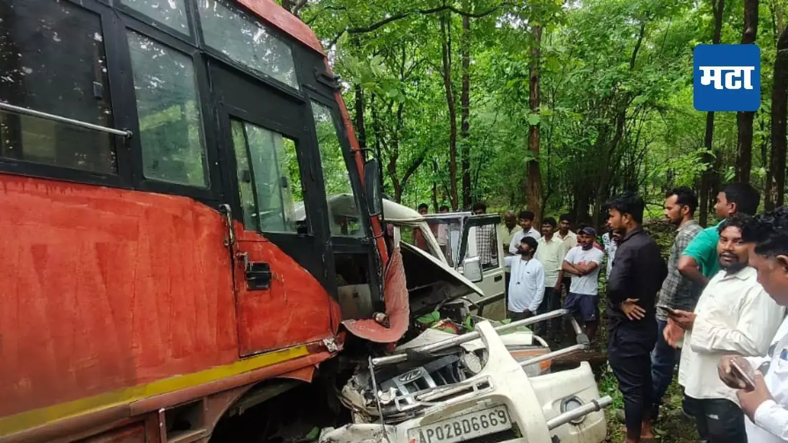 सविस्तर माहिती अशी की, किनवट आगाराची बस क्रमांक एमएच 14 बीटी 2105 आज सकाळी उनकेश्वर येथून मांडवीकडे जात होती. अंबाडी घाटात येताच बस आणि बोलेरो जीपची समोरासमोर धडक झाली. अपघातानंतर बोलेरो जीपला एसटी बसने रस्त्याखाली फरफटत नेले. एसटी बसच्या समोरील भागात बोलेरो जीपचा चालकाच्या बाजूचा भाग अडकला. त्यामुळे चालक जिपमध्येच अडकून पडला. तीन ते चार तास चालक स्टेरिंमध्ये अडकला होता.