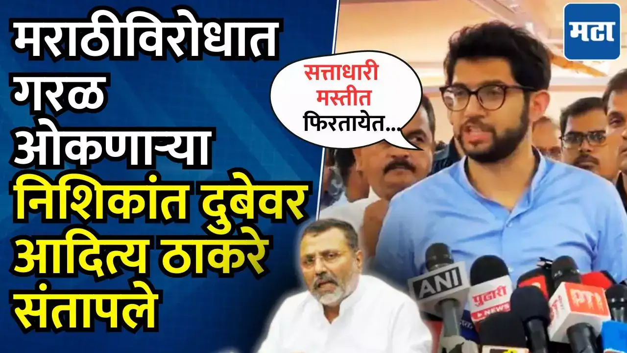 हिंदी आणि मराठी असा भाषा वाद सुरू असल्याचे पाहायला मिळत असून हा भाषा वाद काही संपायचं नाव घेत नाहीये. अशातच भाजप खासदार निशिकांत दुबे यांनी महाराष्ट्रात हिंदी भाषिकांवर हल्ला करणाऱ्यांना उघड आव्हान दिले आहे. त्यावर आता आदित्य ठाकरेंनी प्रतिक्रिया दिली आहे.