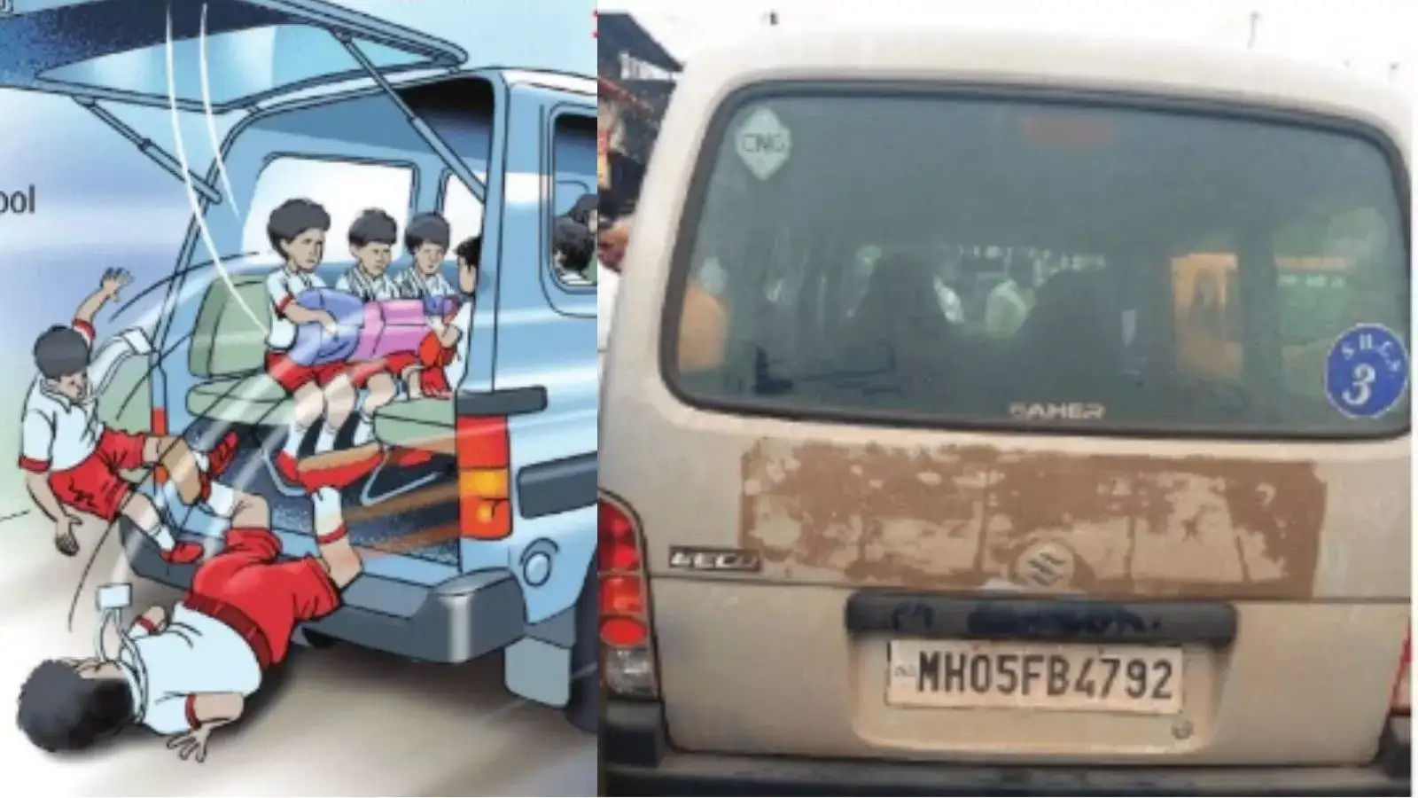 Ambernath KG Students fall from School Van : व्हॅनमध्ये क्षमतेपेक्षा अधिक विद्यार्थी बसले असल्याने मागील बाजूला असलेली नर्सरीची दोन मुले अचानक व्हॅनबाहेर पडली. मागचा दरवाजा उघडला गेल्यामुळे हा अपघात झाल्याची माहिती आहे.