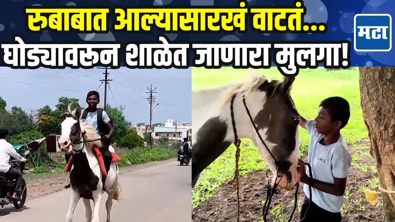 शाळेची वेळ झाली की कुणी सायकल काढतो, कुणी बस पकडतो… तर शाळेत जाण्यासाठी वाहनच नाही, म्हणून काहीजण शिक्षणाकडे पाठही फिरवतात… पण सोलापूरचा हा मुलगा मात्र रोज घोड्यावर बसून शाळेत जातो… काळ्या रस्त्यावर पांढऱ्या घोड्याची टकटक ऐकू आली, की गावकऱ्यांना कळतं आपला लेक शाळेला चाललाय… हा व्हिडीओ सोशल मीडियावर प्रचंड वायरल झाला आहे. आदेश साळुंखे असं या विद्यार्थ्याचं नाव आहे. तो इयत्ता नववीमध्ये शिकतो. शाळेत रुबाबात येतो, रुबाबात शिकतो आणि रुबाबातच घरी जातो. त्याची ही घोड्यावरची स्वारी सर्वत्रच चर्चेचा विषय ठरत असून आकर्षणही ठरू लागलीये… पण घोड्यावरुन शाळेत येण्यामागचं नेमकं कारण काय आहे ते त्याच्याच तोंडून ऐका…