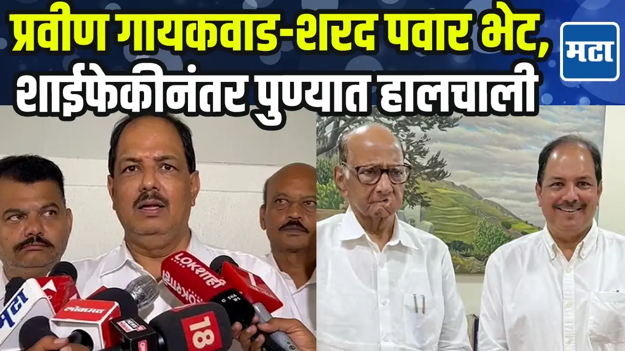 Authored by: सूरज सकुंडे•Contributed by: आदित्य भवार|Maharashtra Times•16 Jul 2025, 8:44 pmपुण्यात प्रवीण गायकवाड-शरद पवार भेटशाईफेकीनंतर प्रवीण गायकवाड पहिल्यांदाच पवारांना भेटलेप्रवीण गायकवाड आणि शरद पवार यांच्यात बंद दाडाआड चर्चा Post navigationमहादेव मुंडे प्रकरण ते शक्तिपीठ महामार्ग…जितेंद्र आव्हाडांनी सरकारला हातच जोडलेHemant Godse: गोडसेंचा घरचा आहेर; शिस्त उरली नसल्याची स्वपक्षावर टीका, भाजपात जाण्याची चर्चा