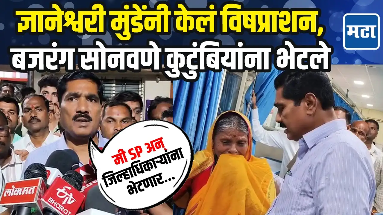 Authored by: सूरज सकुंडे|Maharashtra Times•17 Jul 2025, 9:50 pmज्ञानेश्वरी मुंडेंनी काल विषप्राशन केल्यानं महादेव मुंडे प्रकरण पुन्हा चर्चेत आलं आहे. खासदार बजरंग सोनवणेंनी घेतली ज्ञानेश्वरी मुंडेंच्या कुटुंबियांची भेटबीडच्या कायदा सुव्यवस्थेबाबत एसपी आणि जिल्हाधिकाऱ्यांना भेटणार असल्याचं बजरंग सोनवणे म्हणाले. Post navigationस्वच्छतेत महाराष्ट्राची आघाडी : स्वच्छ सर्वेक्षण २०२४-२५ मध्ये मिरा-भाईंदर मनपा देशात प्रथम – महासंवादविकसित महाराष्ट्र २०४७ मध्ये ‘आयएसओवा’ सक्रीय सहभागी – आयएसओवाचे अध्यक्ष अर्चना मीना – महासंवाद
