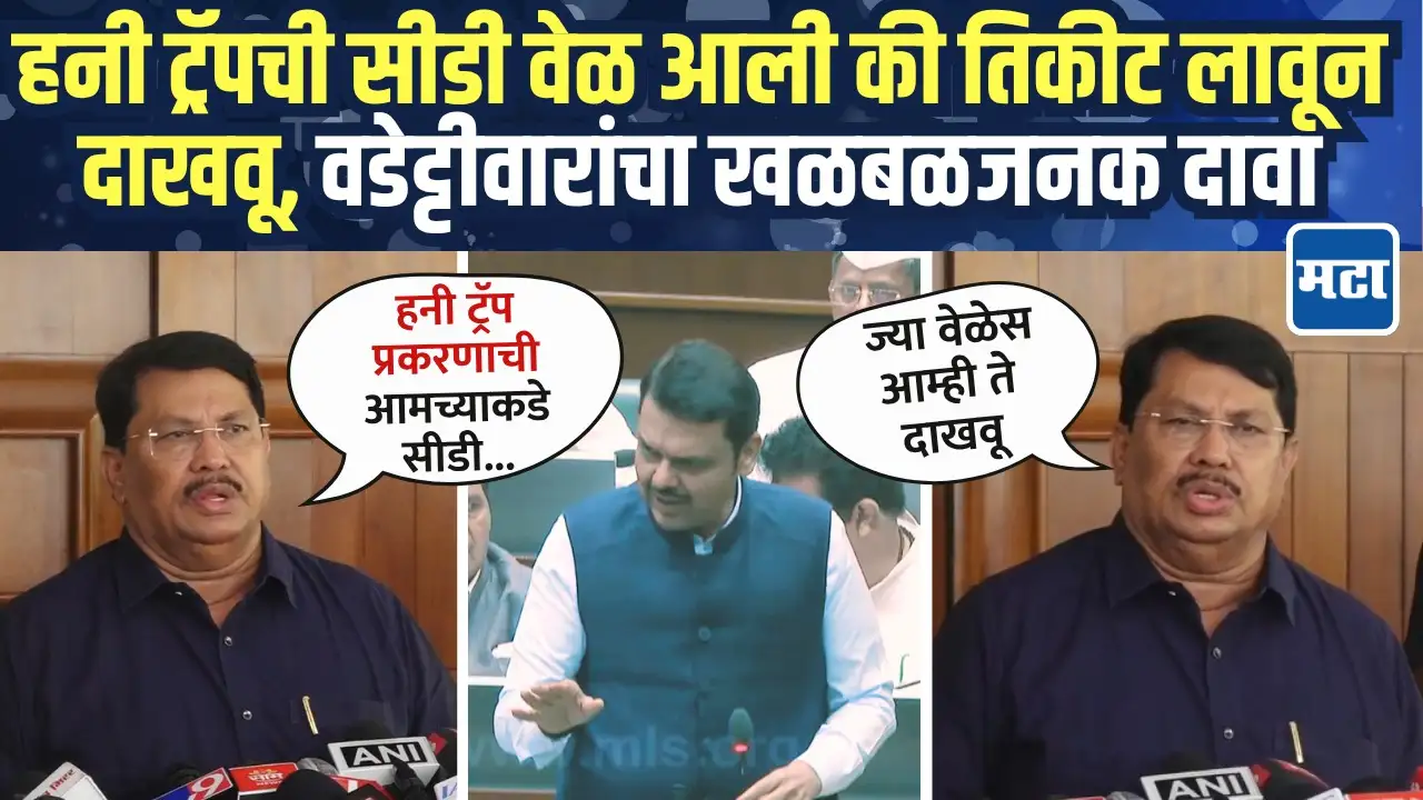राज्यात गेल्या आठवडाभरापासून हनी ट्रॅप प्रकरणाची चर्चा होत आहे. 72 आजी-माजी अधिकारी आणि काही बडे नेते हनी ट्रॅपमध्ये अडकले….असून या हनी ट्रॅपचा सूत्रधार नाशिकचा असल्याची चर्चा आहे.यावरुन काँग्रेस नेते विजय वडेट्टीवार यांनी प्रतिक्रिया दिली आहे. ते म्हणाले की, हनी ट्रॅपवरून ना हनी आहे ना ट्रॅप, असे मुख्यमंत्री म्हणाले. पण, त्या संदर्भात फार मोठी माहिती सरकारकडे आणि विरोधी पक्षाकडे देखील आहे. ज्या वेळेस आम्ही ते दाखवू, त्यावेळेस आम्हाला दहा-वीस हजार रुपयांचे तिकीटच लावावे लागेल.