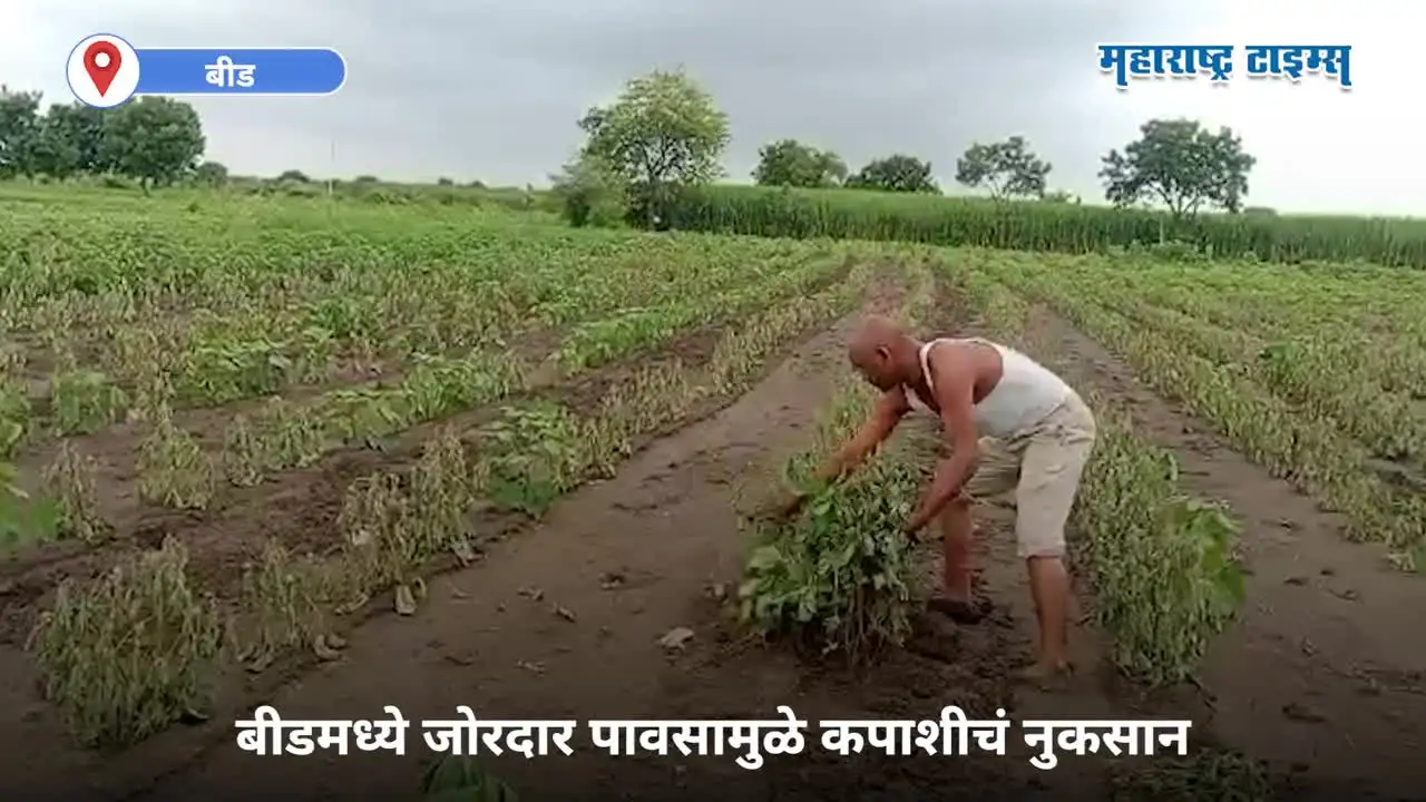 बीडमध्ये काही भागात सततच्या पावसाने शेती पिकांचे नुकसान झाले आहे. गेवराई तालुक्यातील सुरळेगावचे शेतकरी ज्ञानेश्वर काळे असं शेतकऱ्याचं नाव आहे.तीन दिवसाच्या पावसाने शेतातील उभी कपाशी आडवी झाली. यामुळे उसनवारी आणि व्याजाने आणलेले पैसे द्यायचे कसे ?असा प्रश्न शेतकऱ्यापुढं उभा ठाकलाय.