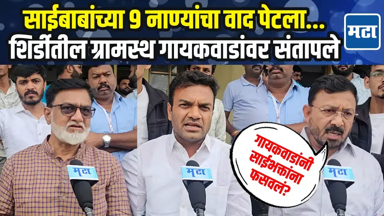 साईबाबांच्या 9 नाण्यांचा वाद पेटलाअरुण गायकवाड यांच्या वादग्रस्त विधानामुळे शिर्डी ग्रामस्थ आक्रमकसाईबाबांविषयी गायकवाडांचं वादग्रस्त वक्तव्य व्हायरलसाईबाबांनी लक्ष्मीबाई शिंदेंना दिलेली 9 नाणी आपल्याकडे असल्याचा अरुण गायकवाड यांचा दावापत्रकार परिषद घेऊन धर्मादाय आयुक्तांच्या अहवालाचा संदर्भ देत केला होता दावामात्र अरुण गायकवाड यांनी पत्रकार परिषदेदरम्यान केले होते साईबाबांविषयी वादग्रस्त विधानचूक लक्षात आल्यानंतर गायकवाड यांच्याकडून दिलगिरी व्यक्तमात्र वादग्रस्त वक्तव्य सोशल माध्यमांवर व्हायरल झाल्यानंतर शिर्डी ग्रामस्थ आक्रमक