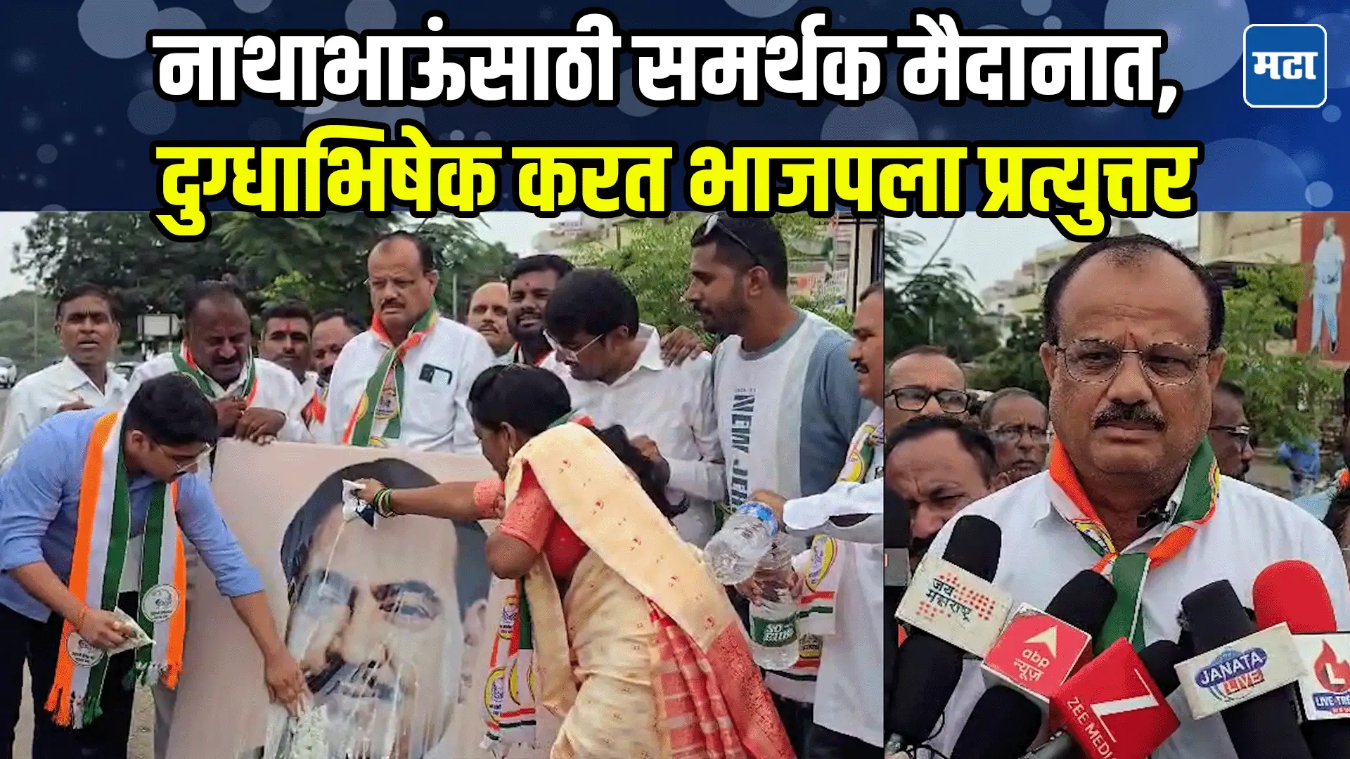 जळगाव राष्ट्रवादी शरद पवार गटातर्फे एकनाथ खडसेंच्या समर्थनार्थ आंदोलन करण्यात आलं.खडसेंच्या प्रतिमेवर दुग्धाभिषेक करत भाजपच्या आंदोलनाला उत्तर देण्यात आलां.भाजपने केलेल्या आंदोलनाविरोधात शरद पवार गट मैदानात उतरला आहे.यावेळी खडसेंच्या समर्थनार्थ शरद पवार गटाच्या वतीने जोरदार घोषणाबाजी करण्यात आली.