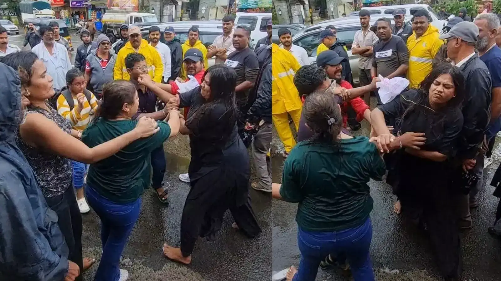 अश्लील अन् अर्वाच्या शिवीगाळ, नंतर महिलांची भर चौकात फ्री स्टाईल हाणामारी, मुंबई-पुणे महामार्ग केला ब्लॉक