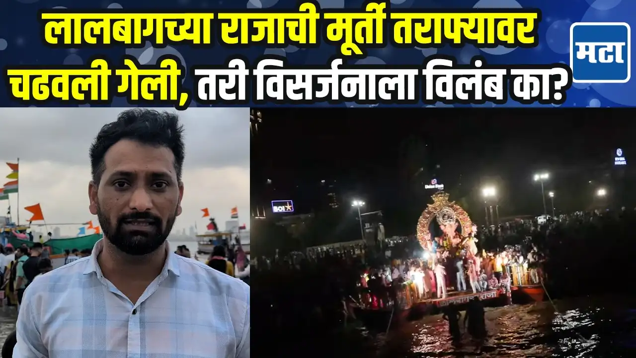 गेल्या पाच तासांपासून लालबागचा राजाची मूर्ती गिरगाव चौपाटीवरील समुद्रात बसून आहे. यंदा लालबागचा राजाचे विसर्जन करण्यासाठी स्वयंचलित आणि…हायड्रोलिक्स यंत्रणा असलेला विशेष तराफ तयार करण्यात आला होता.अत्याधुनिक तराफ्यावर लालबागच्या राज्याची मूर्ती चढवण्यात समुद्राला….भरती आल्यानं पाणी वाढल्यानं सकाळपासून अडचणी येत होत्या. आता लालबागच्या राजाची मूर्ती तराफ्यावर चढवण्यात आलेली आहे.रात्री साडे १० वाजता लालबागच्या राजाला निरोप दिला जाणार आहे.