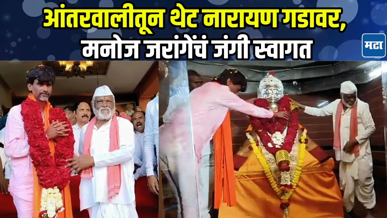 Maharashtra Times•8 Sep 2025, 6:59 pmमुंबईतून परतल्यानंतर मनोज जरांगे नारायणगडावर पोहोचलेमनोज जरांगेंचं नारायणगडावर जंगी स्वागतनारायणगडावरील महंत शिवाजी जरांगे पाटलांचे शाल आणि हार घालून स्वागत केले Post navigationPune Crime : घातपाताचा धोका, आयुषच्या अत्यंविधीला पोलिसांचा मोठा फौजफाटा, जेलमधून पित्याला आणल्यानंतर अखेरचा निरोपगुवाहाटीला बांबूचं फर्निचर आमच्यामुळं झालं….उदय सामंतांच्या विधानावर एकच हशा पिकला