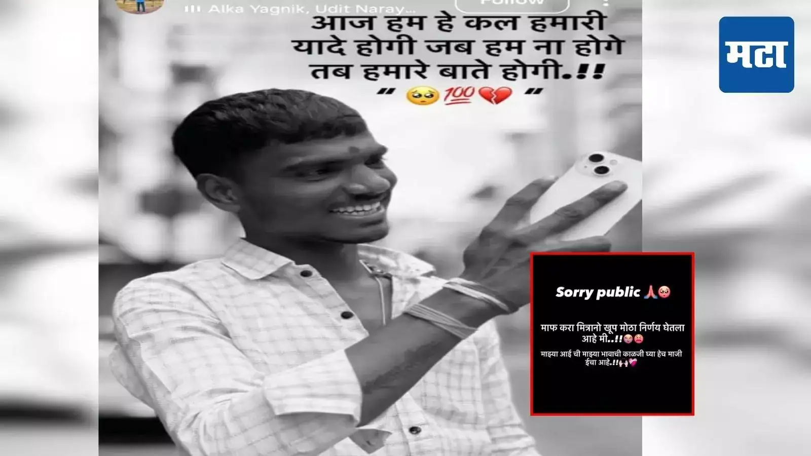 Solapur Man Ends Life : सोलापुरात एका 21 वर्षीय तरुणाने गळफास घेत आयुष्याची शेवट केली. त्याने टोकाचं पाऊल उचलण्याआधी इन्स्टाग्रामवर दोन फोटो शेअर करत आपला निर्णय जाहीरपणे सांगितला होता. त्याच्या निधनाने कुटुंबावर दु:खाचा डोंगर कोसळला आहे.