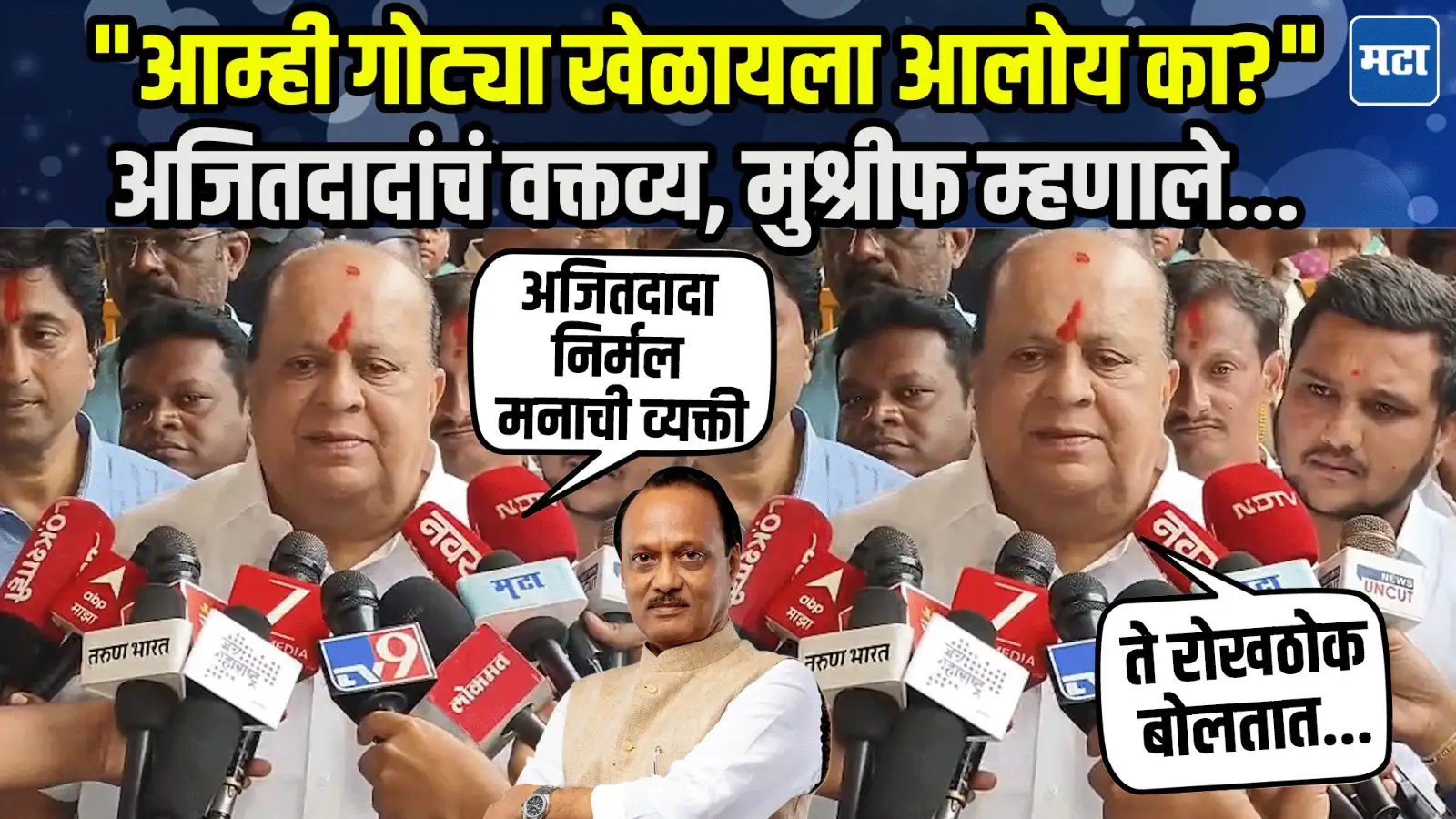 Maharashtra Times•26 Sep 2025, 2:20 pmमंत्री हसन मुश्रीफांनी घेतलं श्री अंबामातेचं दर्शनपूरग्रस्तांना तात्काळ मदत करू, मुश्रीफांचं आश्वासनअजितदादांच्या वादग्रस्त वक्यव्यावरही मुश्रीफांचं भाष्यअजितदादा निर्मळ मनाचे, मुश्रीफांकडून अजितदादांची पाठराखण Post navigationMumbai Local Train : लोकलच्या २० फेऱ्या वाढणार, दहा अप आणि दहा डाउन फेऱ्यांची वाढ; कुठे-कोणत्या मार्गावर होणार फायदा?गडचिरोली : निसर्ग पर्यटनाचा अनमोल ठेवा – महासंवाद