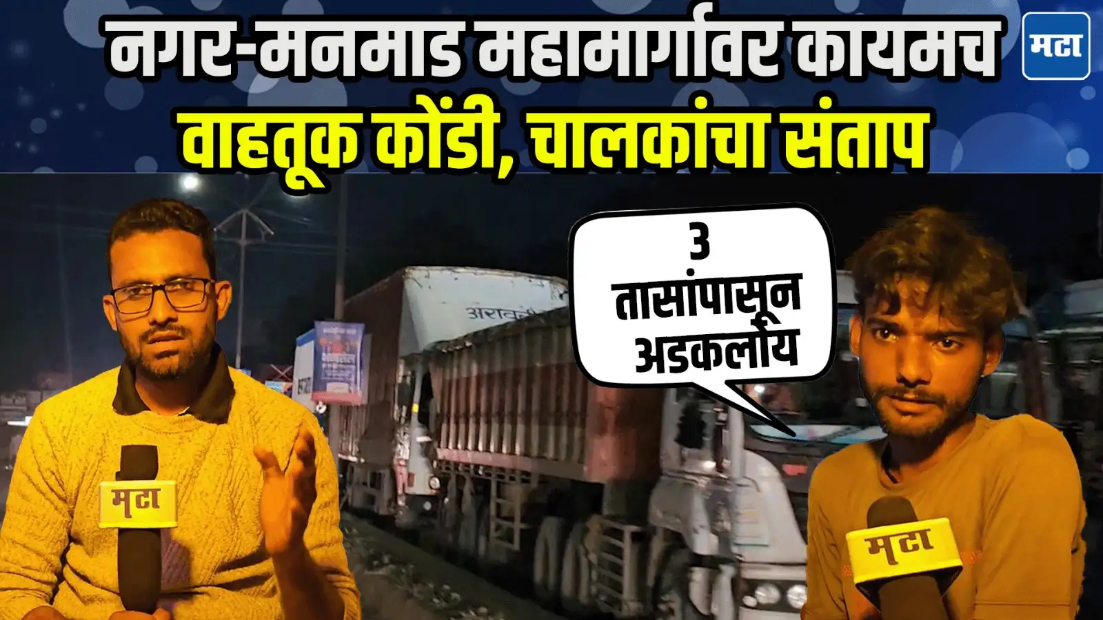 नगर-मनमाड महामार्गाची नेहमीच दुरावस्था होत असल्याची समस्या कायम आहे. यामुळे वाहन चालकांना नेहमीच मोठा मनस्ताप सहन करावा लागत आहे. डागडुजीचे काम सुरू असल्याने पुणतांबा फाटा येथून अवजड वाहतूक वळविण्यात आलीय.त्यातच या परिसरात खड्ड्यांचे साम्राज्य असल्याने वाहतुकीचा वेग मंदावतोय. ५-७ किलोमीटर वाहनांच्या रांगा लागत असून चालकांना मनस्ताप सहन करावा लागतोय.