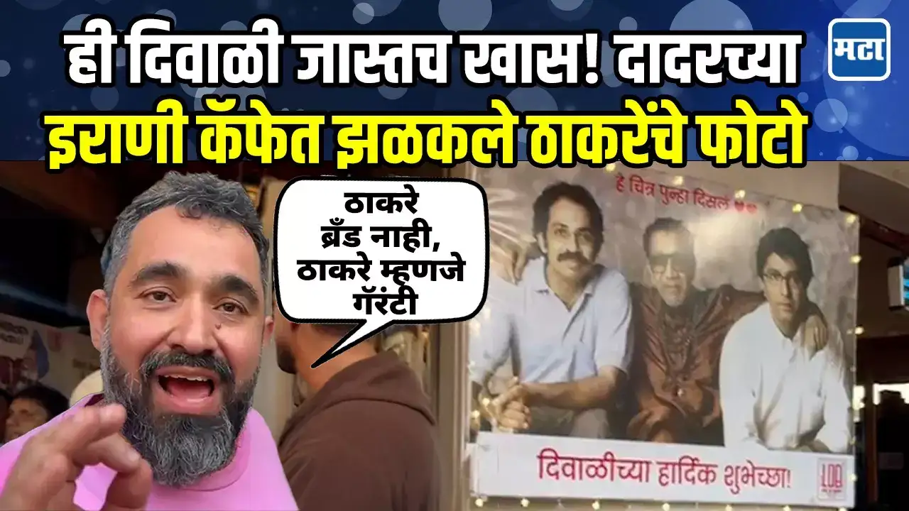 शिवाजी पार्क परिसरातील इराणी कॅफेत लागलेल्या ठाकरे बंधूंच्या फोटोने लक्ष वेधलंय.भारत लाईट कॅफेच्या भिंतीवर बाळासाहेबांसोबत राज-उद्धव ठाकरेंचा फोटो झळकतोय.या फोटोसह दिवाळीच्या शुभेच्छा देणारा हा बॅनर आता चर्चेत आहे.ठाकरे म्हणजे ब्रँड नाही तर ही एक गॅरंटी आहे, असे मत कॅफेचे मालक रेझा इराणींनी व्यक्त केले.