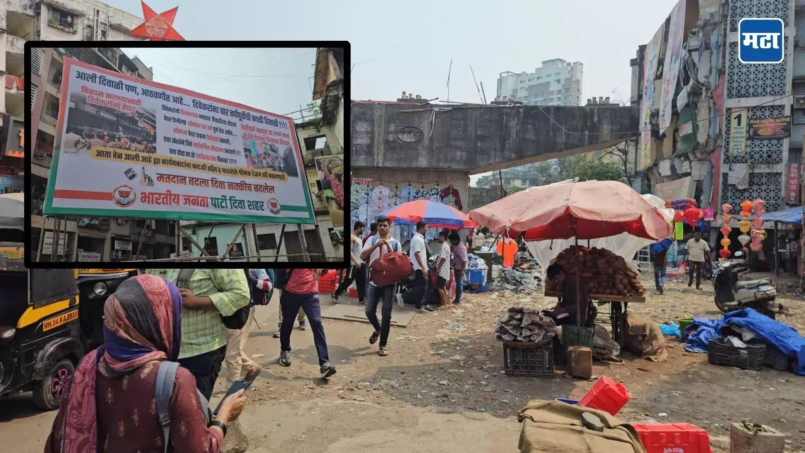 दिव्यात 4 वर्षापूर्वी ऐन दिवाळीत विकासाच्या नावाखाली सामान्य दिवेकरांच्या इमारती पाडून त्यांना बेघर करत पडले गाव येथे स्थलांतरीत करण्यात आलं. मात्र, त्यांच्या समस्या जैसे थे आहेत. त्यामुळे भाजपने ‘आली दिवाळी पण, आठणीत आहे…दिवेकरांना 4 वर्षापूर्वीची काळी दिवाळी’, अशा आशयाचं बॅनर लावले आहेत. याच बॅनरवर विकासाचा चांगलाच समाचार घेण्यात आला आहे. दिवाळीच्या तोंडावर विकासकांनी नागरिकांची घरे तोडली. त्यांना बेघर केलं आणि 50 रुपयांच्या हप्त्यांसाठी फेरीवाले बसविले. एका संस्थेने तिथे सार्वजनिक शौचालय उभारलं. हाच का तो कार्यसम्राटांचा विकास? असं काम करुन दिव्याचा विकास होणार आहे का? ही घरे फेरीवाले बसविण्यासाठी तोडली होती का? असा प्रश्नही या बँनरमधून विचारण्यात आला असून अप्रत्यक्षरित्या शिवसेनेला डिवचलं आहे.