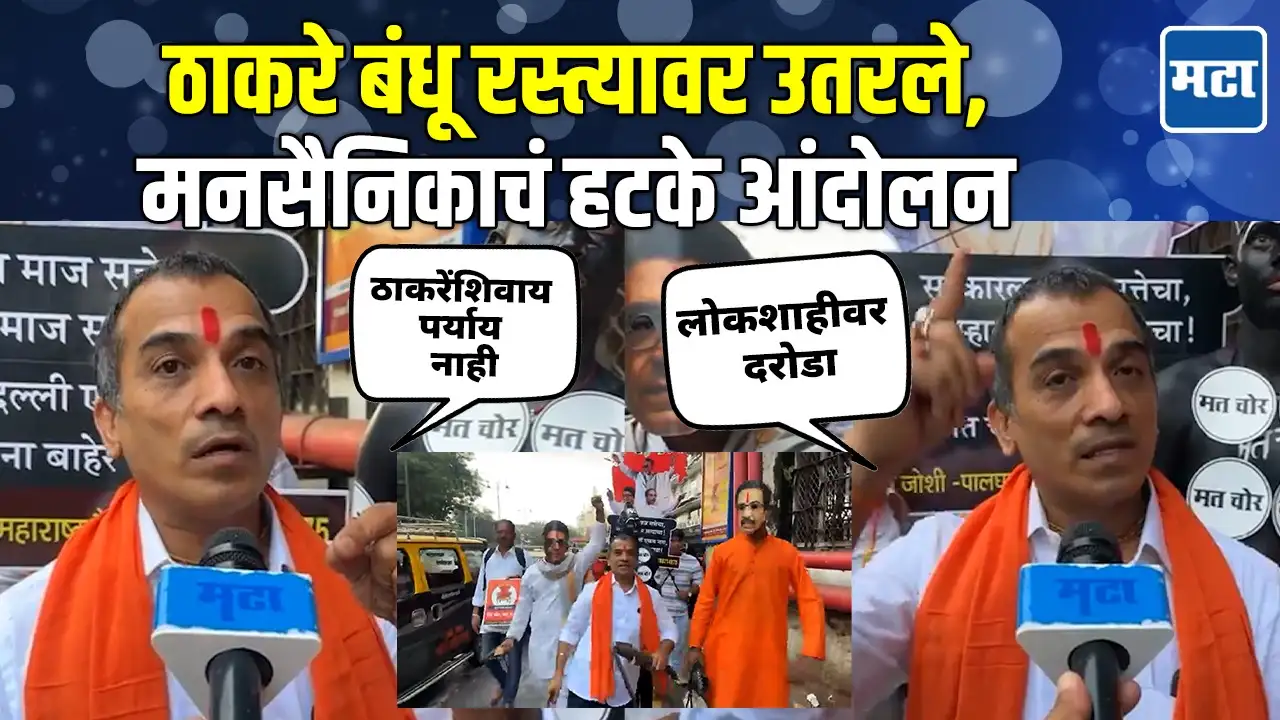 मनसे आणि महाविकास आघाडीकडून १ नोव्हेबरला सत्याचा मोर्चा आयोजित करण्यात आलाय. राज ठाकरे, उद्धव ठाकरे हे देखील या मोर्चात सहभागी होणार आहेत. तत्पूर्वी मनसैनिक तुलसी जोशी यांच्या हटके आंदोलनाने साऱ्यांचं लक्ष वेधलं. मत चोरून आलेलं सरकार असून मनसे सोडणार नाही, असा इशारा त्यांनी महायुतीला दिला. राज्यात ठाकरे बंधूंशिवाय पर्याय नाही, असेही यावेळी तुलसी जोशी यांनी म्हटले.