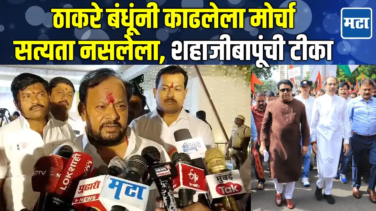 शहाजीबापू पाटील यांनी महाविकास आघाडीच्या सत्याच्या मोर्चावर टीका केली आहे.ते म्हणाले, मविआ आणि ठाकरे बंधूंनी काढलेला मोर्चा सत्यता नसलेला होता. यावेळी बोलताना त्यांनी खासदार संजय राऊतांवरही टीका केली आहे. दोन महिने महाराष्ट्र सकाळच्या किरकिरेला कंटाळला होता आता विश्रांती मिळेल.