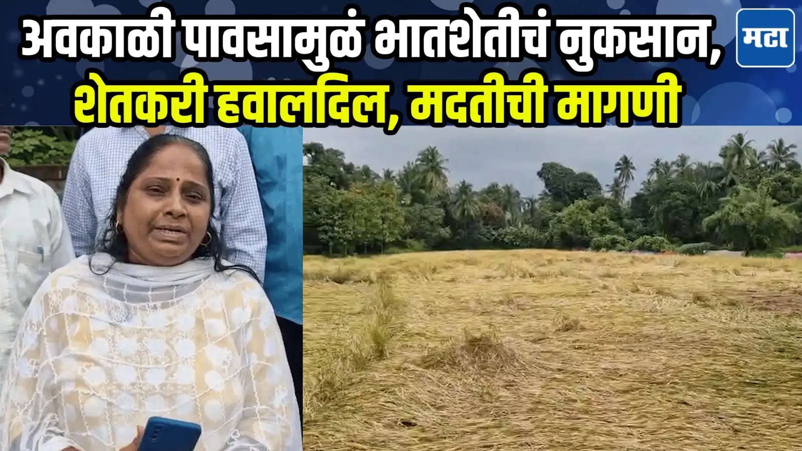 अवकाळी पावसामुळं भातशेतीचं मोठं नुकसानशेतकरी संकटात, सरकारकडं मदतीची मागणी Post navigationनितीन गडकरींचं कौतुक, पण सरकारवर निशाणा…बाळासाहेब थोरात काय म्हणाले?Raigad: कोल्हापुरातल्या वृद्ध दाम्पत्यानंतर आणखी एका वृद्ध दाम्पत्याचाही संशयास्पद मृत्यू, घरात मृतदेह आढळल्याने खळबळ
