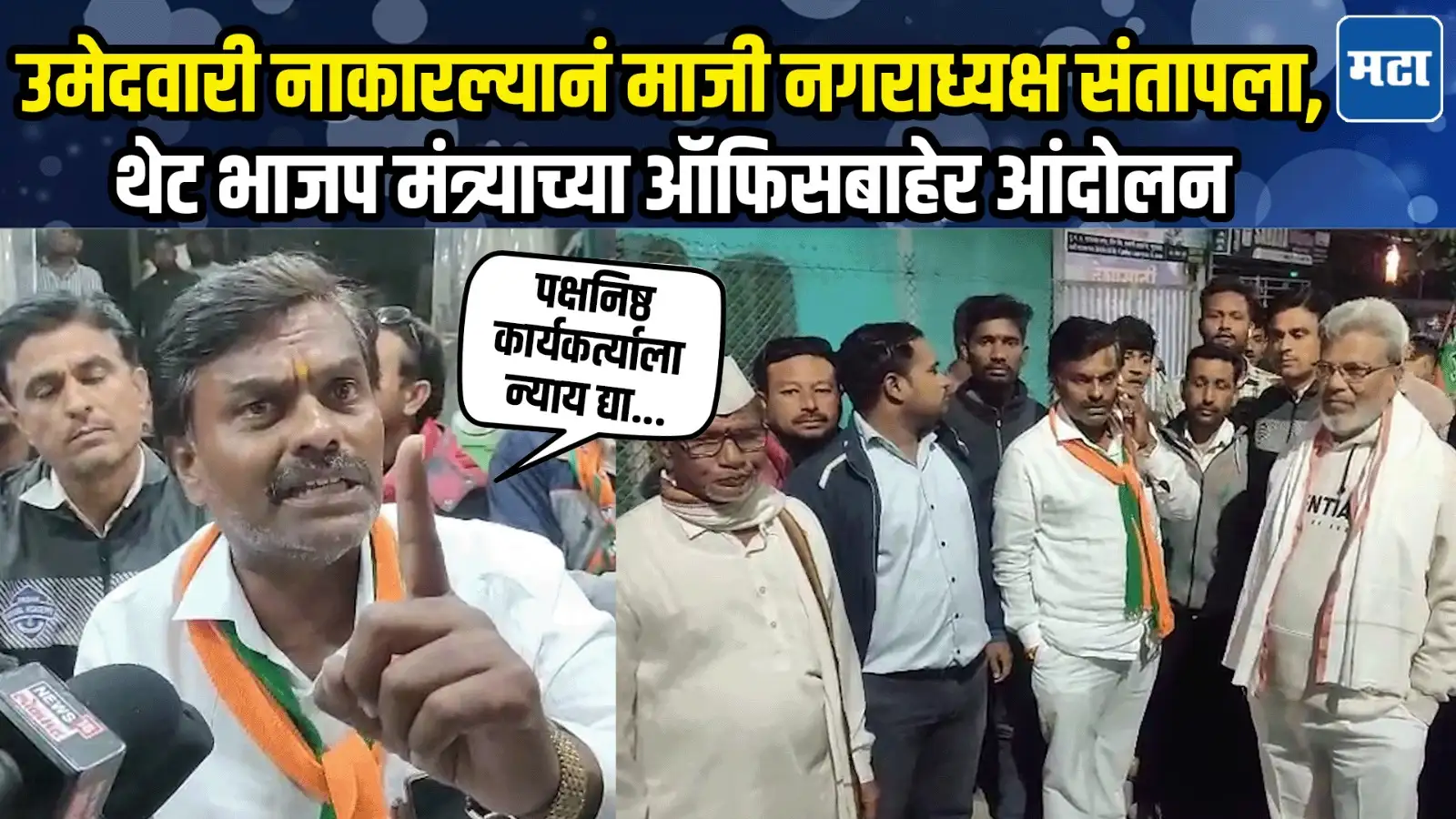 Maharashtra Times•14 Nov 2025, 11:05 amFollowउमेदवारी नाकारल्यानं माजी नगराध्यक्ष संतापलापक्षनिष्ठ कार्यकर्त्याला न्याय द्या, माजी नगराध्यक्ष सुनील काळेंचं आंदोलनभाजप मंत्री सुनील काळेंच्या ऑफिसबाहेर सुनील काळेंचं आंदोलन Post navigationTrupti Desai : मुलीच्या कपड्यावर कमेंट्स, इंदोरीकर महाराजांकडून कीर्तन सोडण्याचा इशारा, पण तृप्ती देसाईंनी दिला भलताच सल्ला, म्हणाल्या…BMC Elections 2025: मुंबई महापालिकेतील मतदारसंख्या 1 कोटी 23 लाखांवर, 58 हजार नावे वगळली