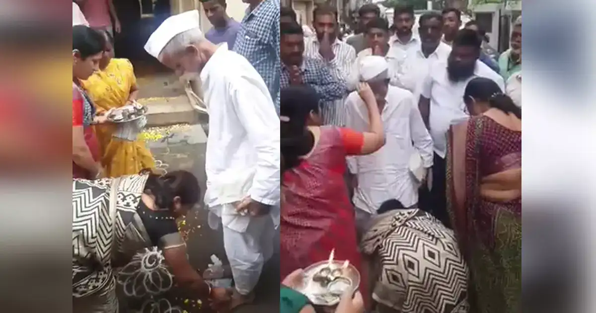 सांगली : आपल्या वादग्रस्त वक्तव्यांमुळे ज्यांच्यावर गेले अनेक दिवस टीका होत असलेले आण त्या बद्दल गुन्हा दाखल झालेले श्री शिवप्रतिष्ठान हिंदुस्थानचे संस्थापक संभाजी भिडे यांच्या गाजलेल्या विदर्भ दौऱ्यानंतर ते सांगलीमध्ये आज सायंकाळी दाखल झाले. संभाजी भिडे हे सांगलीतील त्यांच्या गावभागातील निवासस्थानी येताच शिवप्रतिष्ठानच्या धारकऱ्यांनी त्यांचे मोठ्या जल्लोषात स्वागत केले. फटाक्यांची आतिषबाजी करत, भिडेंवर फुलांची उधळ करत महिलांनी यावेळी औक्षण केले. यावेळी धारकऱ्यांनी भारत माता कि जयच्या जोरदार घोषणा दिल्या.
