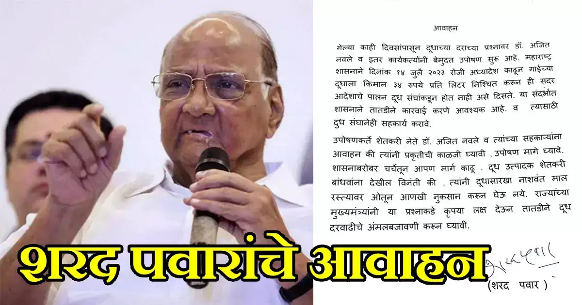 यासंबंधी जारी केलेल्या निवेदनात पवार यांनी म्हटले आहे, गेल्या काही दिवसांपासून दुधाच्या दराच्या प्रश्नांवर डॉ. अजित नवले व इतर कार्यकर्त्यांची बेमुदत उपोषण सुरू आहे. महाराष्ट्र सरकारने १४ जुलै २०२३ रोजी अध्यादेश काढून गाईच्या दूधाला किमान ३४ रुपये प्रति लिटर निश्चित करूनही सदर आदेशाचे पालन दूध संघांकडून होत नाही, असे दिसते. या संदर्भात सरकारने तातडीने कारवाई करणे आवश्यक आहे. त्यासाठी दूध संघानेही सहकार्य करावे. उपोषणकर्ते शेतकरी नेते डॉ. नवले व त्यांच्या सहकाऱ्यांना आवाहन आहे की, त्यांनी प्रकृतीची काळजी घ्यावी, उपोषण मागे घ्यावे. शासनाबरोबर चर्चेतून आपण मार्ग काढू. दूध उत्पादक शेतकरी बांधवांना देखील विनंती की, त्यांनी दूधासारखा नाशवंत माल रस्त्यावर ओतून आणखी नुकसान करून घेऊ नये. राज्यांच्या मुख्यमंत्र्यांनी या प्रश्नाकडे कृपया लक्ष देऊन तातडीने दूध दरवाढीचे अंमलबजावणी करून घ्यावी, असे पवार यांनी म्हटले आहे.