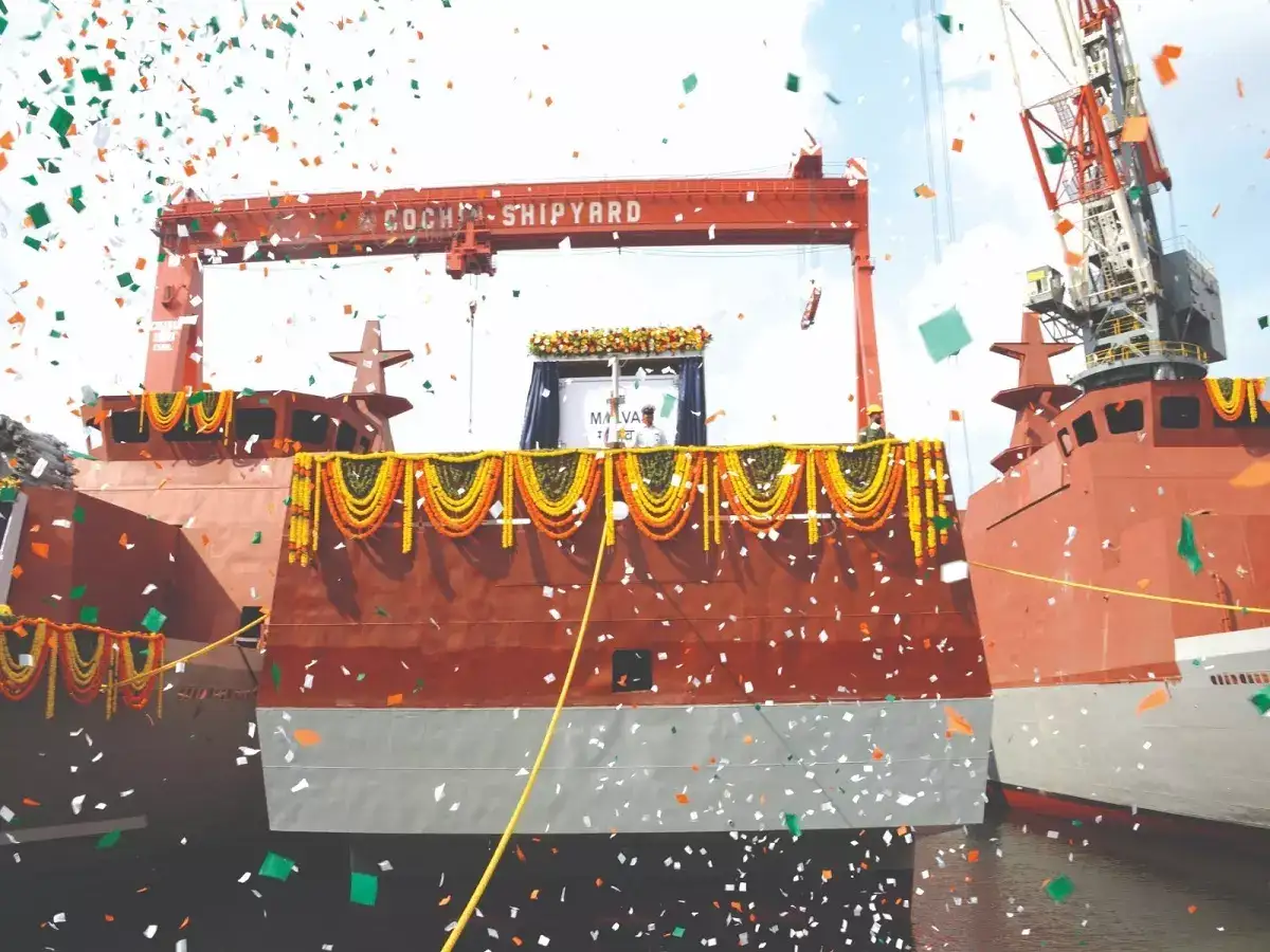 कोचीन शिपयार्डमध्ये अशाप्रकारे आठ युद्धनौकांची बांधणी होत आहे. त्यापैकी तीन युद्धनौकांची बांधणी पूर्ण झाली असून त्यांचे गुरुवारी एकाचवेळी जलावतरण झाले. या तीन युद्धनौकांची नावे ‘मालवण’, ‘मंगरोळ’ व ‘माहे’ अशी आहेत. मंगरोळ हे शहर गुजरातच्या किनारपट्टीवर, तर माहे हे केरळजवळील समुद्रकिनारी असलेले शहर आहे. तिन्ही युद्धनौकांची नावे समुद्रकिनारी असलेल्या शहरांच्या नावे देण्यात आली आहेत, अशी माहिती नौदलाकडून देण्यात आली.