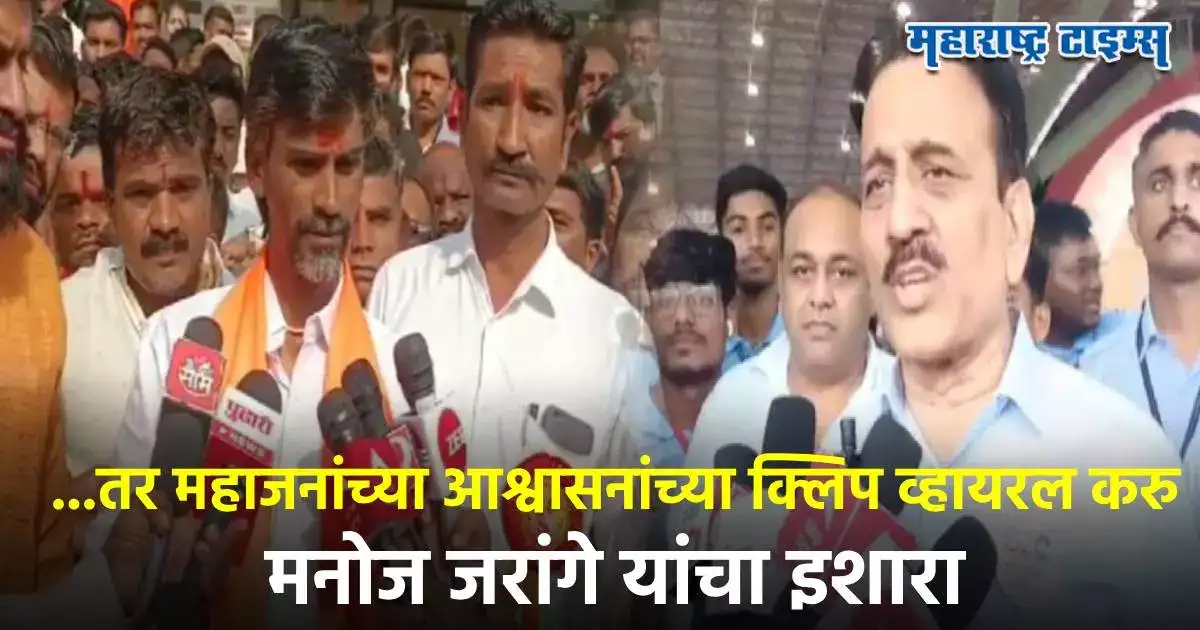 यावेळी जरांगे पाटील म्हणाले की, गिरीश महाजन यांनी विचार करुन वक्तव्ये करावीत. त्यांनी आपली मागणी पूर्ण करण्यासाठी वेळ मागितला होता. त्यानंतर त्यांना आपण वेळ दिला होता. आमच्याकडे त्यांनी दिलेल्या आश्वासनाचे अनेक पुरावे आहेत. तसेच, त्यांनी चुकीची वक्तव्ये करून समाजाची दिशाभूल करू नये. अन्यथा आम्ही त्यांच्या आश्वासनाच्या क्लिप राज्यभर व्हायरल करू, असा इशारा मनोज जरांगे पाटील यांनी दिला. संकटमोचक असलेल्या मोठ्या मंत्र्याने असे बोलणे योग्य नसल्याचा टोलाही त्यांनी लगावला.