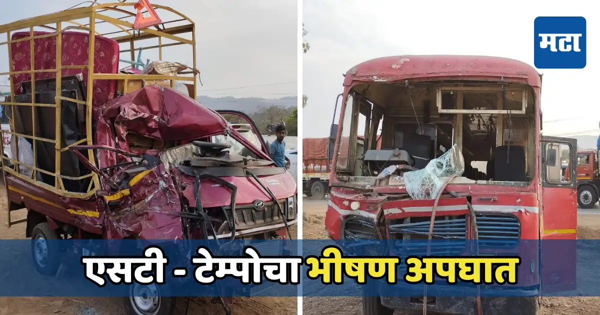 प्रसाद रानडे, रायगड : मुंबई – गोवा महामार्गावर नागोठण्याजवळील निडी येथे एसटी महामंडळाच्या महाड – बोरिवली गाडीचा अपघात झाला. निडी येथील इन्फिनिटी गॅसेस या कंपनी समोरील महामार्गावर सायंकाळी ४.४५ वाजण्याच्या सुमारास हा अपघात घडला. पेणवरुन महाडकडे घरगुती सामान घेऊन जाणारा टेम्पो आणि एसटी यांच्यात झालेल्या भीषण धडकेत टेम्पो चालकाचा गंभीर जखमी होऊन जागीच मृत्यू झाला. टेम्पोतील एक व्यक्ती आणि महिला गंभीर जखमी झाली आहे.