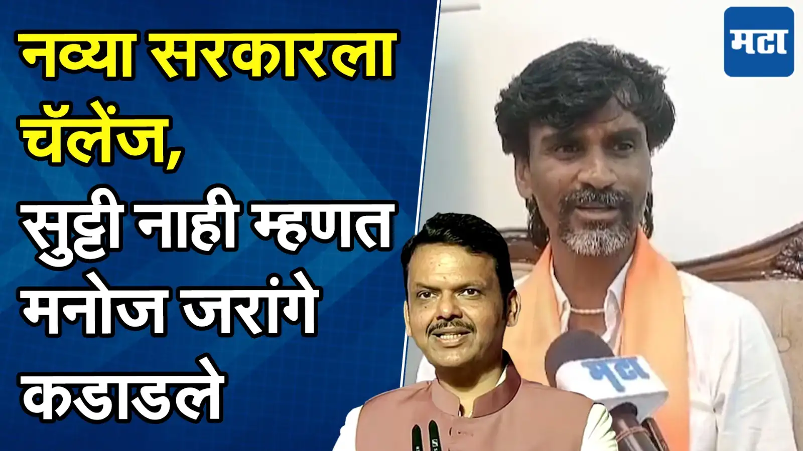 विधानसभा निवडणुकीत महायुतीला प्रचंड मोठं बहुमत मिळाल्यानंतर काल (५ डिसेंबर) भाजपाचे नेते देवेंद्र फडणवीस यांनी मुख्यमंत्री पदाची शपथ घेतली आहे. त्यांच्याबरोबरीने शिवसेनेचे नेते एकनाथ शिंदे आणि राष्ट्रवादीचे अजित पवार यांनी…देखील उपमुख्यमंत्री पदाची शपथ घेतली आहे. दरम्यान हा शपथविधी झाल्याच्या दुसर्याच….दिवशी मराठा आंदोलनाचे नेते मनोज जरांगे पाटील यांनी सरकारला एक महिन्याचा अल्टिमेटम दिला आहे. येत्या ५ जानेवारीपर्यंत मराठा आरक्षणाचा मुद्दा मार्गी लावावा, असे जरांगे पाटील म्हणाले आहेत. मनोज जरांगे यांच्याशी संवाद साधलाय आमचे प्रतिनिधी संजय आहेर यांनी…