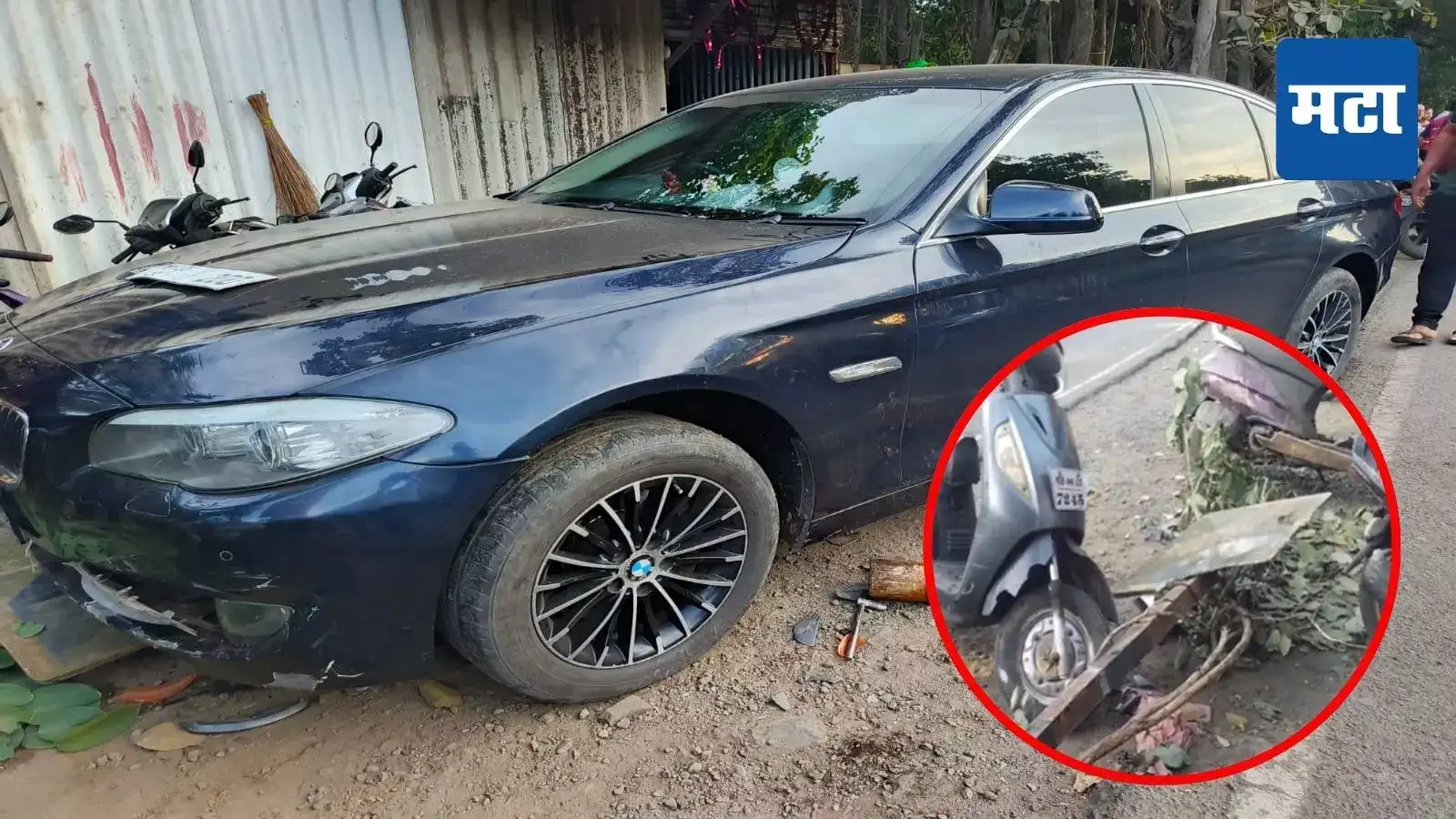 BMW Car Accident : भरधाव BMW कार रस्त्यावरुन थेट गॅरेजमध्ये घुसली. यात अनेक वाहनांचं नुकसान झालं असून गॅरेज मालकासह दोघे जखमी झाले आहेत. अपघातानंतर कार चालकारा ताब्यात घेण्यात आलं आहे.