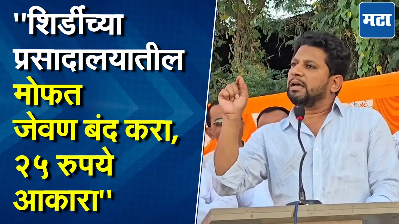 साई संस्थानच्या प्रसादालयातील मोफत जेवण बंद करा अशी मागणी सुजय विखेंनी संस्थान प्रशासनाकडे केली.जे पैसे अन्नदानात जातात ते पैसे आमच्या मुलांच्या मुलींच्या भविष्यासाठी शिक्षणासाठी खर्च करा असं विखे म्हणाले.अख्खा देश इथे येऊन फुकट जेवतोय, महाराष्टातील सगळे भिकारी इथे गोळा झालेत असं विखे म्हणाले.शिर्डीत कोट्यवधी रुपये खर्च करून शैक्षणिक संकुल उभारण्यात आलं मात्र चांगले शिक्षक तेथे नाही असं विखे म्हणाले.साई संस्थानचा पैसा शिर्डीच्या विकासासाठी खर्च झाला पाहिजे असंही सुजय विखे म्हणाले.