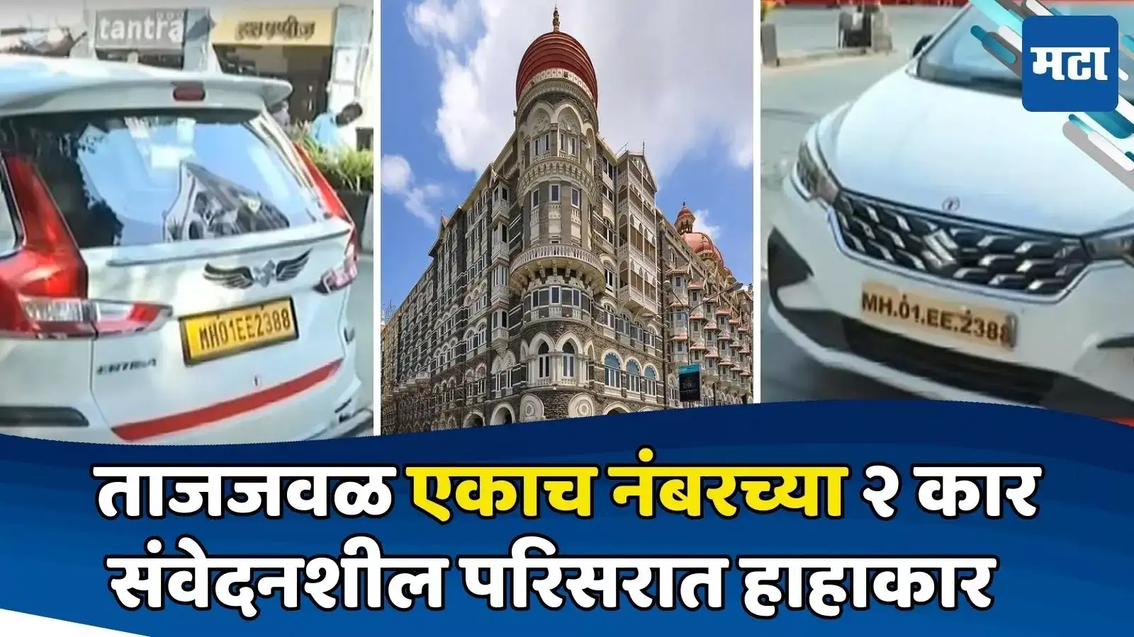 सुप्रसिद्ध ताज हॉटेलच्या परिसरात एकाच नंबरप्लेटच्या दोन कार आढळून आल्यानं एकच खळबळ उडाली. हॉटेलमध्ये चेक इन करतेवेळी हा प्रकार उघडकीस आला. ताज हॉटेलचा परिसरात अतिसंवेदनशील असल्यानं कुलाबा पोलिसांनी तपास वेगानं सुरु केला.