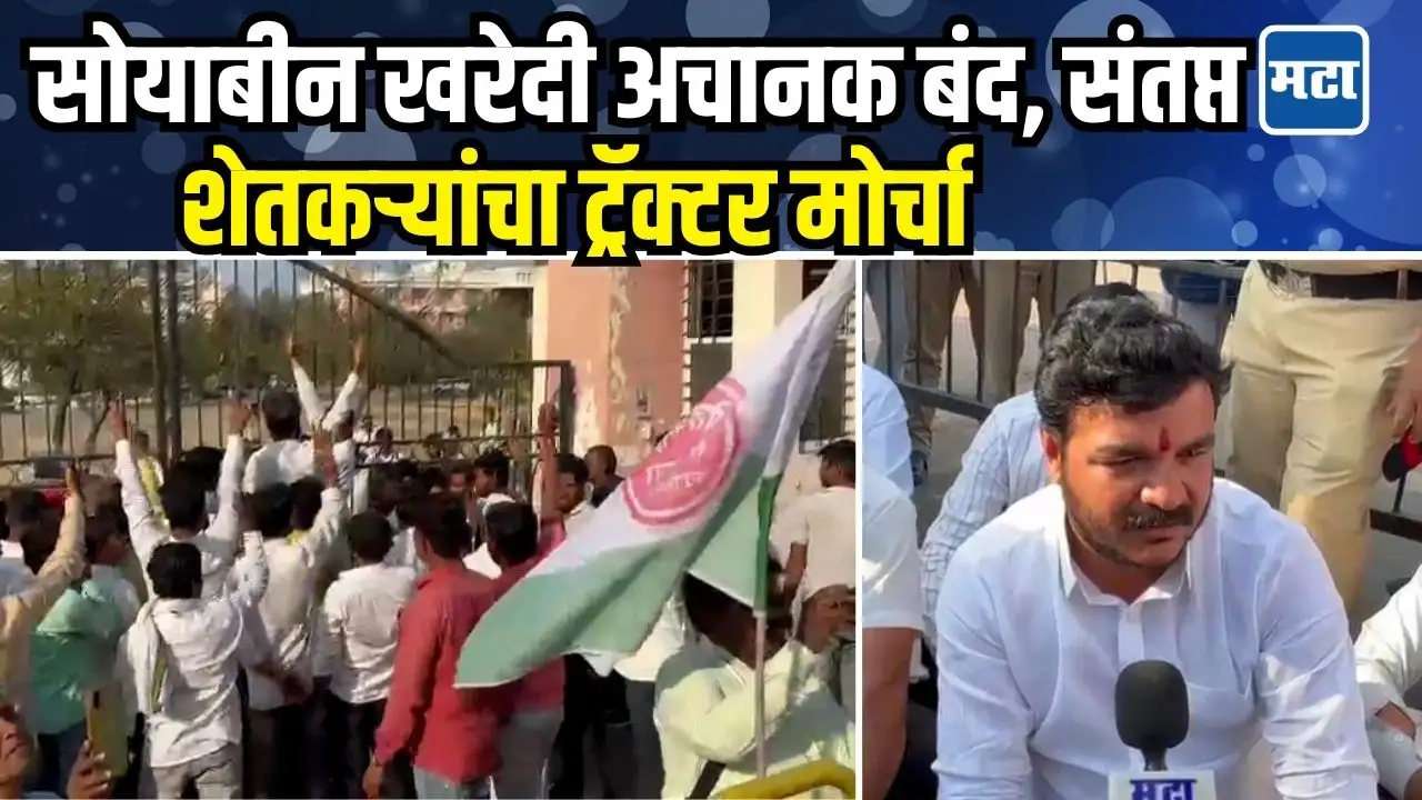 लातूर जिल्ह्यातील 52 सोयाबीन खरेदी केंद्र बंद करण्यात आलीयेत.सोयाबीन खरेदीचे लक्ष पूर्ण झाल्याने खरेदी केंद्र बंद करण्यात आले.सोयाबीन खरेदी अचानक बंद झाल्याने शेतकरी संतप्त झाले.शेतकऱ्यांनी जिल्हाधिकारी कार्यालयावर ट्रॅक्टर मोर्चा काढला.