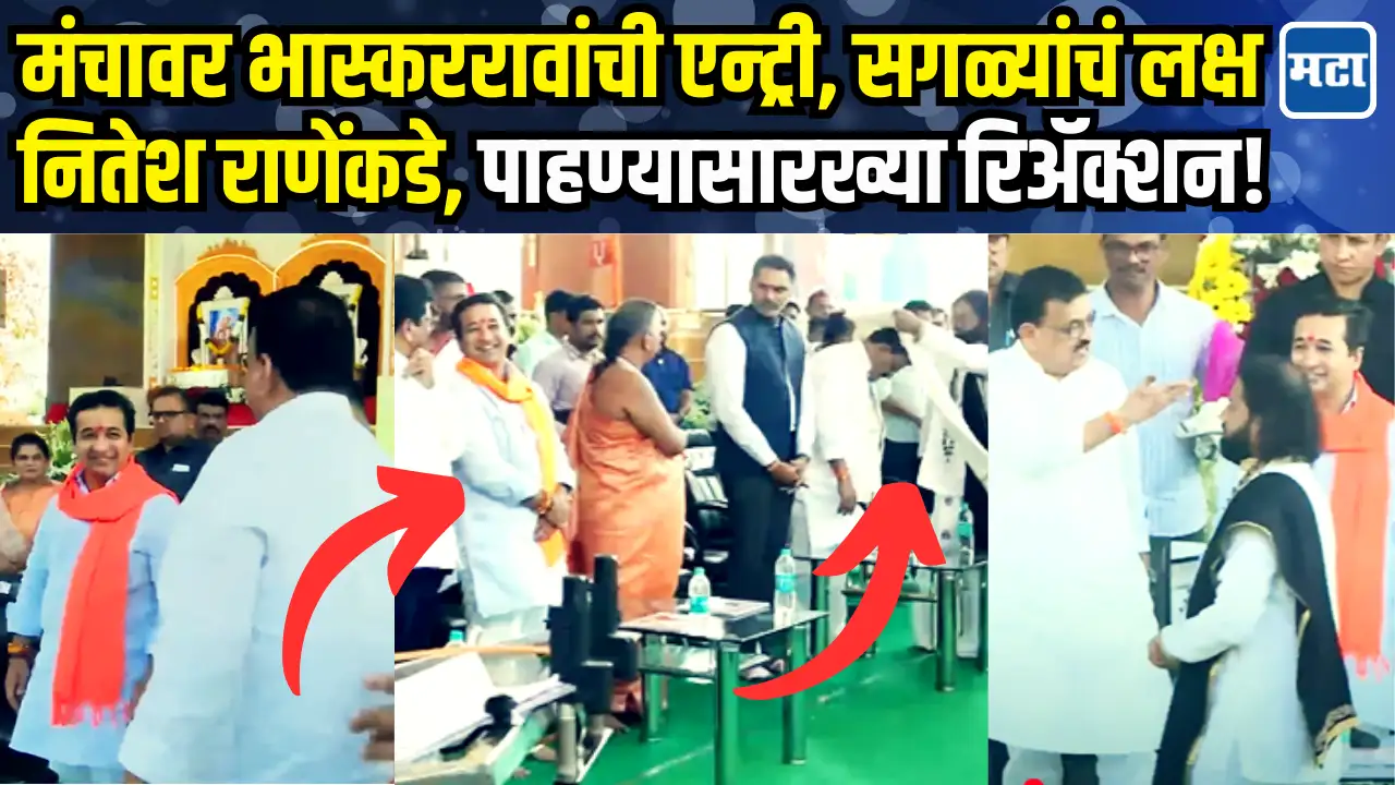 श्री क्षेत्र नाणीजधाम रत्नागिरी येथील संत शिरोमणी गजानन महाराजांच्या….प्रकट दिन सोहळ्याला सर्वपक्षीय नेत्यांनी उपस्थितीती लावली. श्री क्षेत्र नाणीज धाम येथे यावेळी लोकप्रतिनिधींचा नागरी सत्कार करण्यात आला. याप्रसंगी व्यासपीठावर जगतगुरू नरेंद्रचार्याजी महाराज यांच्यासह….मठाचे उत्तराधिकारी कानिफनाथ महाराज, राज्याचे उद्योगमंत्री उदय सामंत…गृह राज्यमंत्री योगेश कदम, आमदार भास्कर जाधव, शेखर निकम, किरण सामंत उपस्थित होते.यावेळी ठाकरे गटाचे आमदार भास्कर जाधव यांची एन्ट्री चर्चेचा विषय ठरली. दरम्यान भास्कर जाधव यांच्या एन्ट्रीवेळी सगळ्यांचं लक्ष नितेश राणेंकडे लागलं होतं. भास्कर जाधवांची एन्ट्री झाली, सत्कार झाला पण नितेश राणेंची रिअॅक्शन पाहण्यासारखी होती.