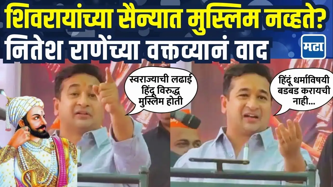 छत्रपती संभाजी महाराज बलिदान दिनी नितेश राणेंनी केलेल्या वक्तव्यामुळं वादकसबा संगमेश्वर येथील कार्यक्रमात नितेश राणेंचं वादग्रस्त वक्तव्यशिवरायांच्या सैन्यात मुस्लिम सैनिक नव्हते, असंही नितेश राणे म्हणाले. स्वराज्याची लढाई हिंदू विरुद्ध मुस्लिम अशी होती, असं नितेश राणे म्हणाले.