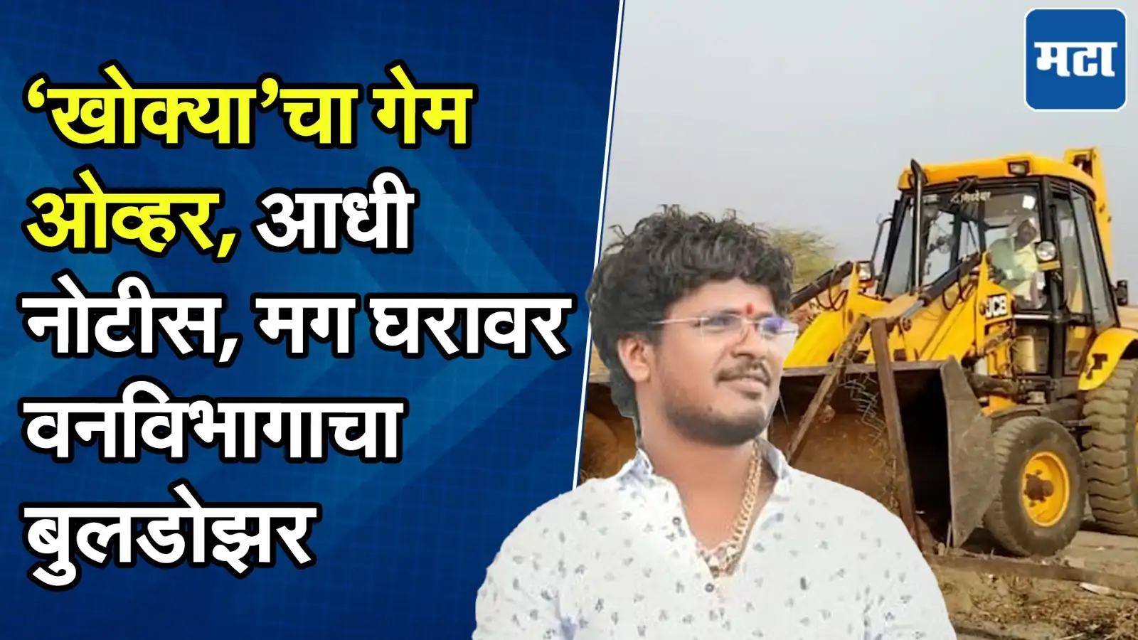 खोक्या उर्फ सतीश भोसलेच्या पोलिसांनी उत्तर प्रदेशातील प्रयागराज येथे मुसक्या आवळल्या. काही दिवसांपूर्वी वनविभागाकडून खोक्याच्या घराची तपासणी करण्यात आली होती.यावेळी वनविभागाला खोक्याच्या घरातून जनावरांचं सुखलेलं मांस….आणि शिकारीसाठी लागणारं साहित्य सापडलं होतं. ते त्यांनी ताब्यात घेतलं होतं. तर ज्या ठिकाणी खोक्याने घरं उभारलं होतं ते वनविभागाच्या जागेवर उभारलं असल्याची…माहिती समोर आल्यानंतर वनविभागाकडून कारवाई करण्यात आली आहे. वनविभागाकडून खोक्याच्या घरावर बुलडोझर फिरवण्यात आल्याचे पाहायला मिळत आहे. खोक्याचं घर पाडण्यात आलं आहे. यापूर्वीच त्याला नोटीस देखील देण्यात आली होती. त्यानंतर आता वनविभागाकडून खोक्याच्या घरावर मोठी कारवाई करण्यात आली आहे.