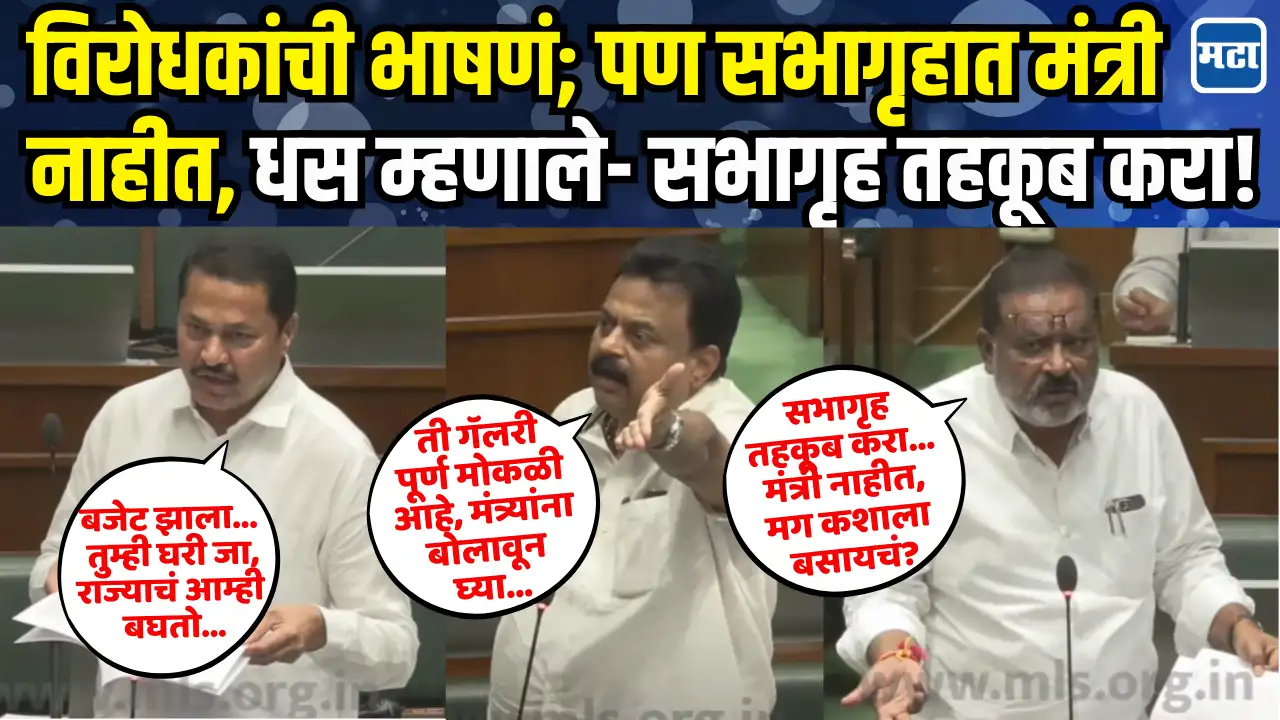 विधिमंडळाचं अर्थसंकल्पीय अधिवेशन सुरु असून आज अधिवेशनाचा अकरावा दिवस होता. सभागृहात काँग्रेस नेते नाना पटोले आणि शिवसेना ठाकरे गटाचे नेते सुनील प्रभू बोलले. पण यावेळी प्रस्ताव मांडताना सत्ताधाऱ्यांकडून कोणतेच नेते सभागृहात उपस्थित नव्हते. पण सभागृहात मंत्रिच नाहीत, मग प्रस्ताव मांडून त्यावर उत्तरे कोण देणार अशी स्थिती झाली.यावरुन नाना पटोले आणि सुनील प्रभू बोलत असताना भाजपचे आमदार सुरेश धस उभे राहिले. सुरेश धस यांनी थेट अध्यक्षांनाच सवाल करत सभागृह तहकूब करण्याची मागणी केली. कोणासमोर मांडायचं हे असं म्हणत एकप्रकारे नाना आणि सुनील प्रभू यांनाच साथ दिली.