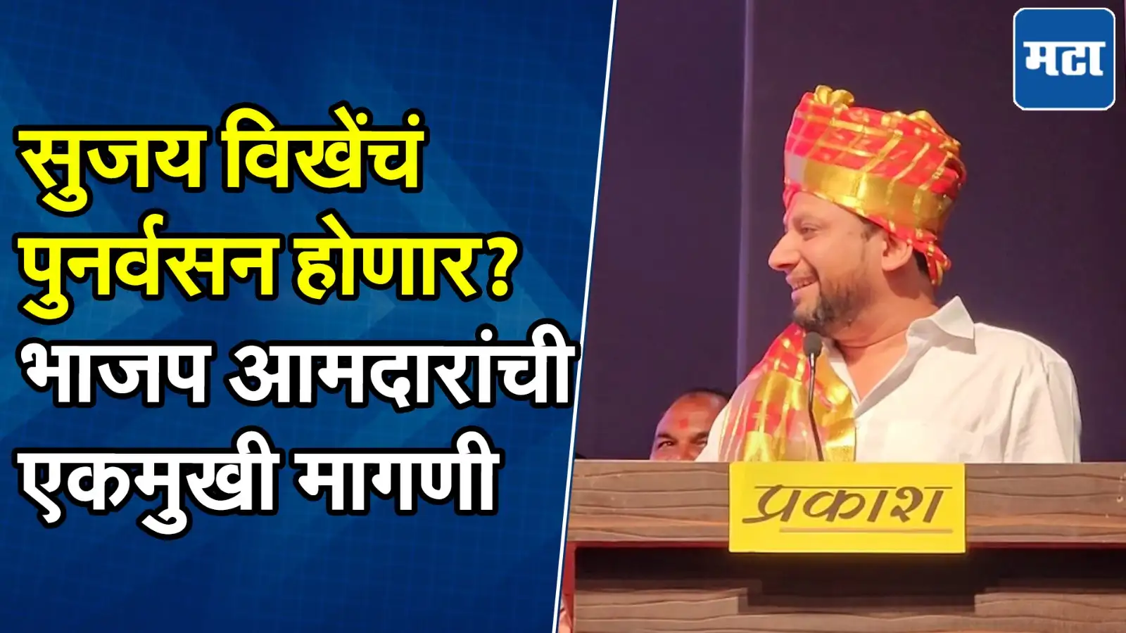 नुकत्याच झालेल्या लोकसभा निवडणुकीत माजी खासदार सुजय विखे यांचा पराभव झाला होता. राष्ट्रवादी काँग्रेस शरद पवार गटाच्या निलेश लंके यांनी सुजय विखे यांचा पराभव केला होता. दरम्यान सुजय विखे यांच्या राजकीय पुनर्वसनाची मागणी होत आहे. विधानपरिषेदेचे सभापती राम शिंदे, आमदार विक्रम पाचपुते, शिवाजीराव कर्डीले यांसह भाजप आमदारांनी सुजय विखेंच्या पुनर्वसनाची मागणी केलीये.