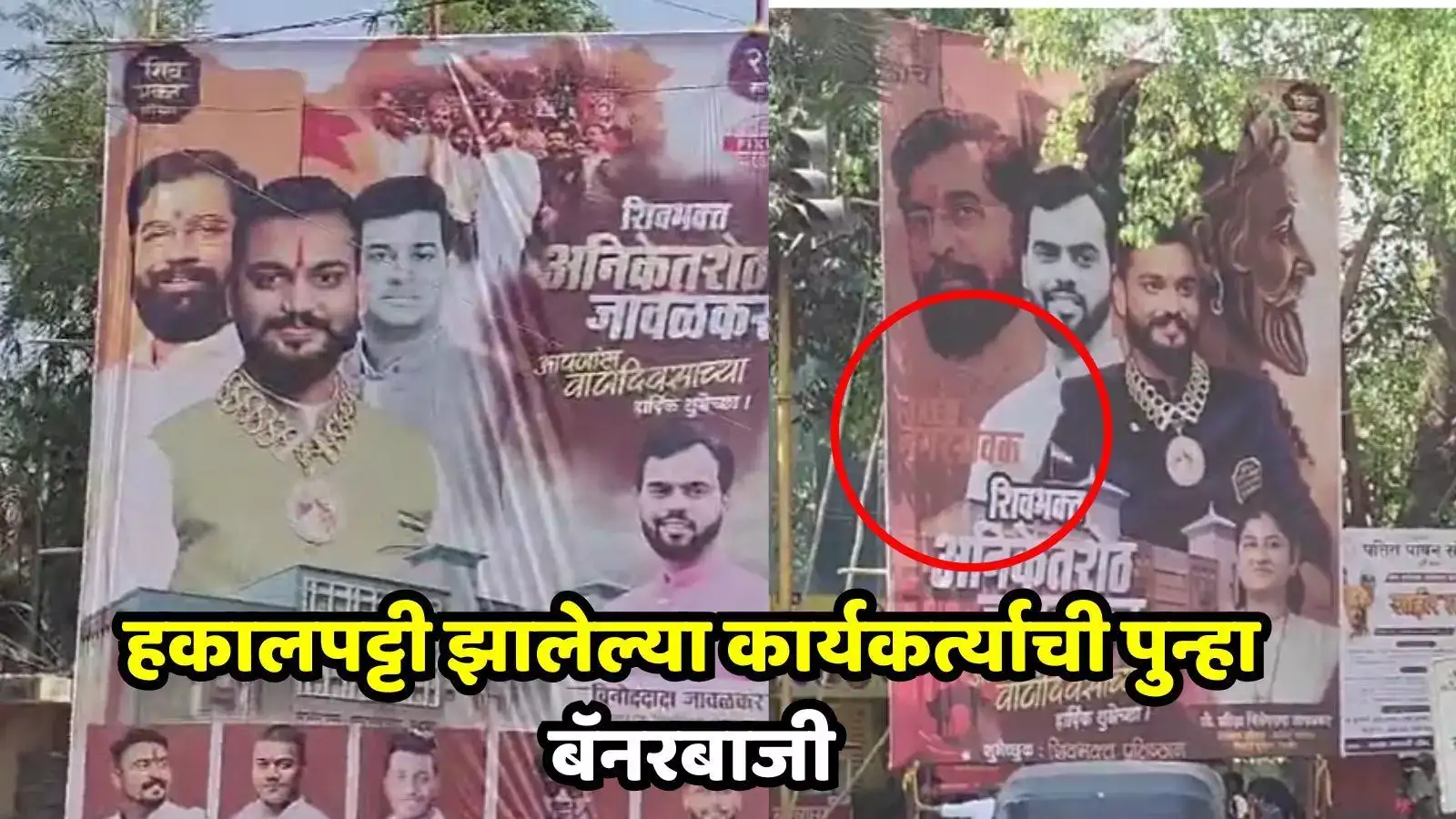 Pune Political News: अनिकेत जावळकर यांच्या वाढदिवसानिमित्त वारजेच्या आंबेडकर चौकात काही बॅनर लावण्यात आले आहेत. अनिकेत जावळकरची दीड वर्षांपूर्वी शिंदे गटातून हकालपट्टी करण्यात आली होती. दरम्यान, पक्षात नसतानाही अनिकेत जावळकरने आपल्या वाढदिवसानिमित्त उपमुख्यमंत्री एकनाथ शिंदे आणि खासदार श्रीकांत शिंदे यांच्या फोटोसह बॅनर लावले आहेत.