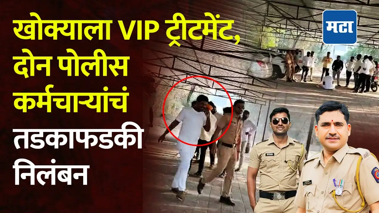 मारहाण प्रकरणात अटकेत असलेल्या सतीश भोसले उर्फ खोक्याला पोलिसांकडून व्हीआयपी ट्रीटमेंट देण्यात येत असल्याचा व्हिडिओ व्हायरल झाला होता. या घटनेची गंभीर दखल घेत पोलिसांनी सतीश भोसले उर्फ खोक्याला व्हीआयपी ट्रीटमेंट देणाऱ्या दोन पोलीस कर्मचाऱ्यांचे तडकाफडकी निलंबन करण्यात आलंय. विनोद सुरवसे आणि कैलास खटाणे अशी निलंबित करण्यात आलेल्या पोलीस कर्मचाऱ्यांची नावं आहेत. याशिवाय ठाणेदारांनाही कारणे दाखवा नोटीस बजावण्यात आलीये. या कर्मचाऱ्यांसह इतर अधिकारी दोषी असतील, तर त्यांच्यावर देखील कारवाई केली जाणार असल्याची माहिती अपर पोलीस अधीक्षक सचिन पांडकर यांनी दिली.