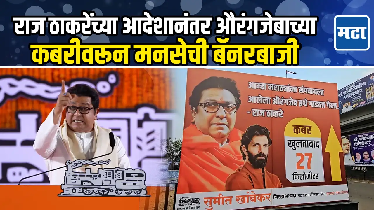हिंदुत्ववादी संघटनांनी संभाजी महाराजांचा छळ करणाऱ्या औरंग्याची कबर उखडून फेका अशी मागणी केली आहे. ही कबर काढून न टाकता तिथे मराठ्यांना संपवायला आलेला औरंगजेब इथे गाडला गेला हे असं लिहा राज ठाकरे म्हणाले.यावरून छत्रपती संभाजीनगर शहरातील मनसेतर्फे बॅनरबाजी करण्यात आली आहे. आम्हा मराठ्यांन संपवायला आलेला औरंगजेब इथे गाडला गेला असा मजकूर लिहिलेला बॅनर क्रांती चौकात लावण्यात आले.
