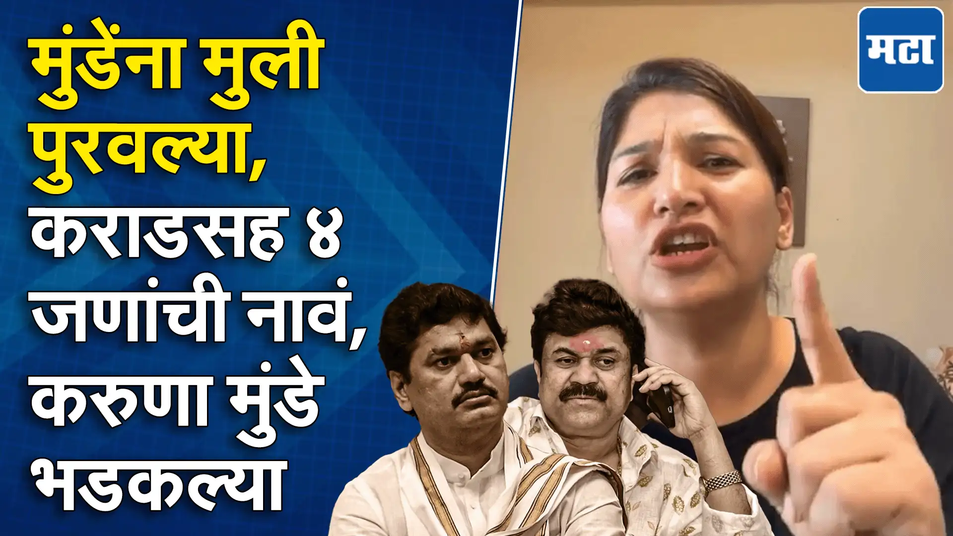 धनंजय मुंडेंच्या पहिल्या पत्नी करुणा शर्मा मुंडे यांनी नवे गौप्यस्फोट केले आहेत. माझे खोटे व्हिडिओ बनवून व्हायरल केले असा गंभीर आरोप करुणा मुंडेंनी केला. माझा नवरा सोन्यासारखा आहे, मात्र दलाल गँगचा यात हात असल्याचा आरोप त्यांनी केला. पंकजा पालवे, भगीरथ बियाणी यांच्याविरोधात षडयंत्र रचले गेले असेही त्या म्हणाल्या.