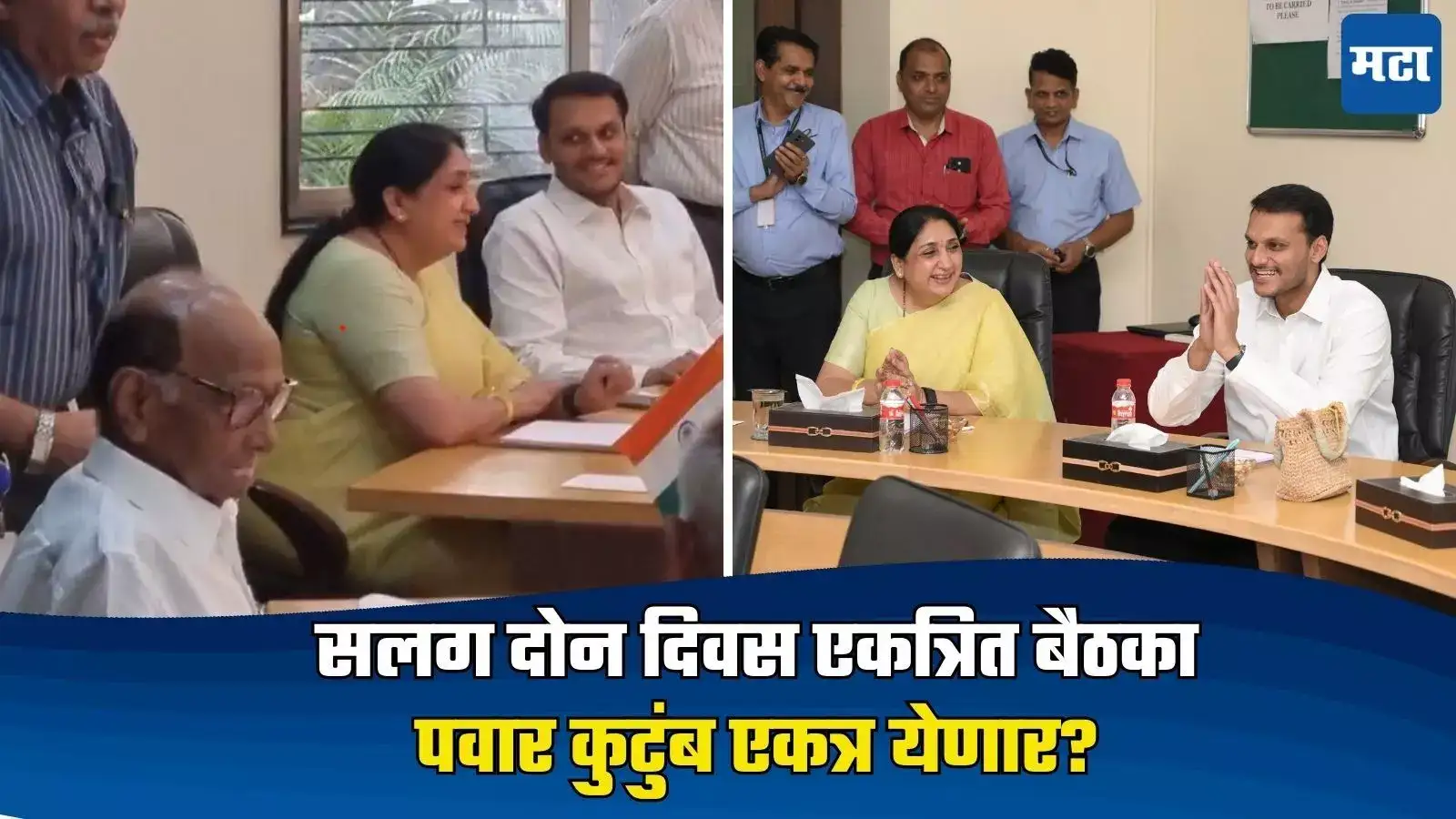 युगेंद्र पवार यांनी कांकीची बैठकीपूर्वी भेट घेत त्यांच्या पाया पडले. त्यानंतर बैठकीतही दोघेही शेजारी बसले होते त्यांच्या सोबत शरद पवार हेही या बैठकीत उपस्थित होते त्यामुळे काल शरद पवार यांची त्यांचा पुतण्या अजित पवार यांच्यासोबत एकत्रित बैठकीत सहभाग घेतला. आता अजित पवार यांच्या पत्नी सुनेत्रा पवार यांनी त्यांचा पुतण्या युगेंद्र पवार यांच्यासोबत शरद पवार सहभागी झालेल्या बैठकतीत उपस्थिती दर्शवली. त्यामुळे पवार कुटुंबियांच्या चर्चेला उधाण आले आहे.रोहित पवार यांनी उद्धव ठाकरे आणि राज ठाकरे यांनी मनोमिलनाच्या केलेल्या इशाऱ्यावर एक्स पोस्ट टाकली होती. ती पोस्टही चर्चेचा विषय ठरत आहे.