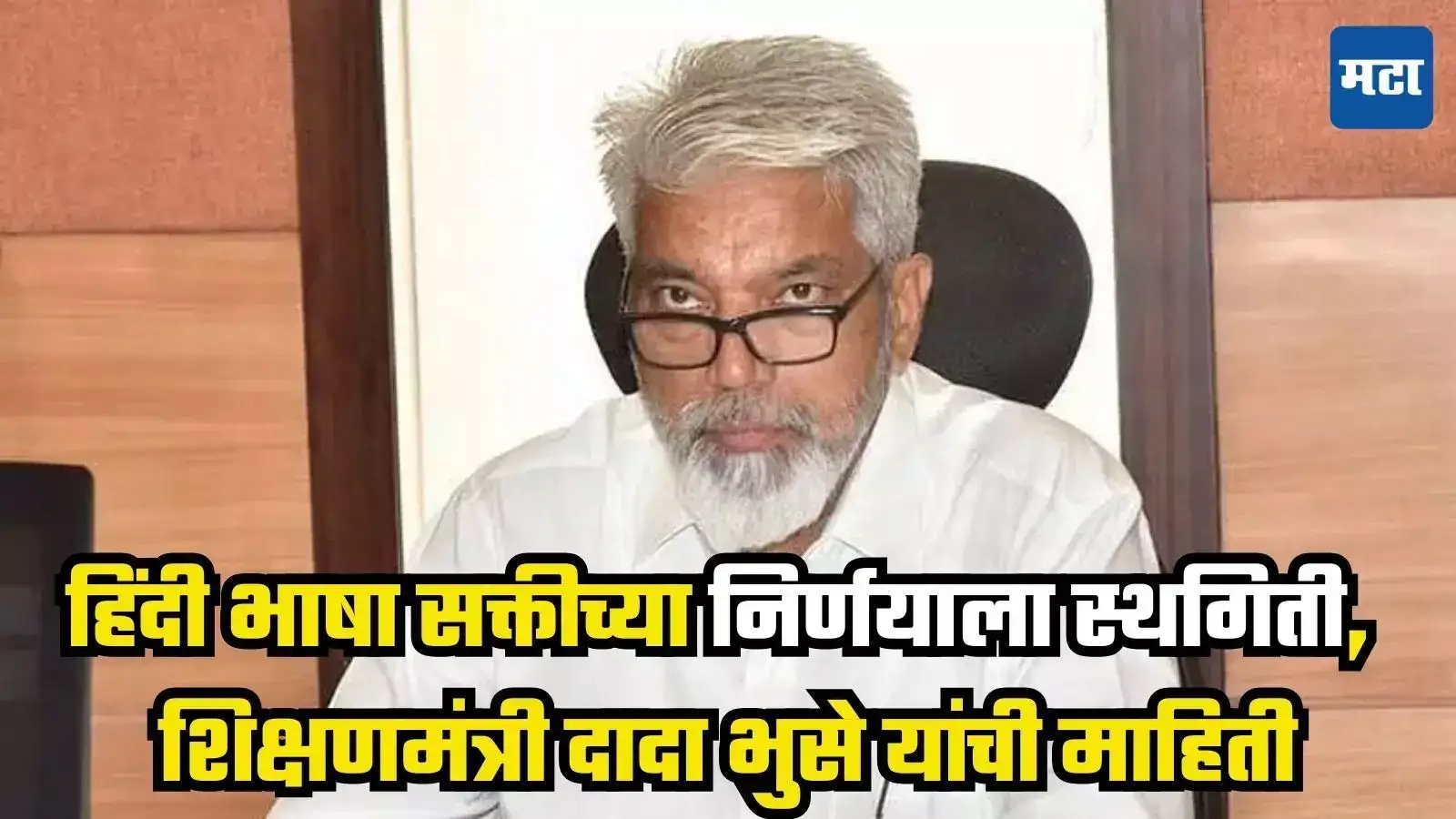 हिंदी भाषा सक्तीच्या निर्णयाला स्थगिती देण्यात आली आहे. हिंदी भाषा बंधनकारक असणार नाही, असं मंत्री दादा भुसे म्हणाले आहेत. हिंदी भाषा’ अनिवार्य’ या शब्दाला आम्ही स्थगिती देतोय, असं दादा भुसे यांनी म्हटलं आहे. सुधारित शासन निर्णय जारी करणार असल्याचं दादा भुसे यांनी सांगितलं आहे. मराठी, इंग्रजीसह ज्यांना हिंदी शिकायचं असेल त्यांना हिंदी शिकवली जाईल. पण हिंदी शिकवण्याबाबत कोणतंही बंधन नसेल, असंही दादा भुसे म्हणाले आहेत.
